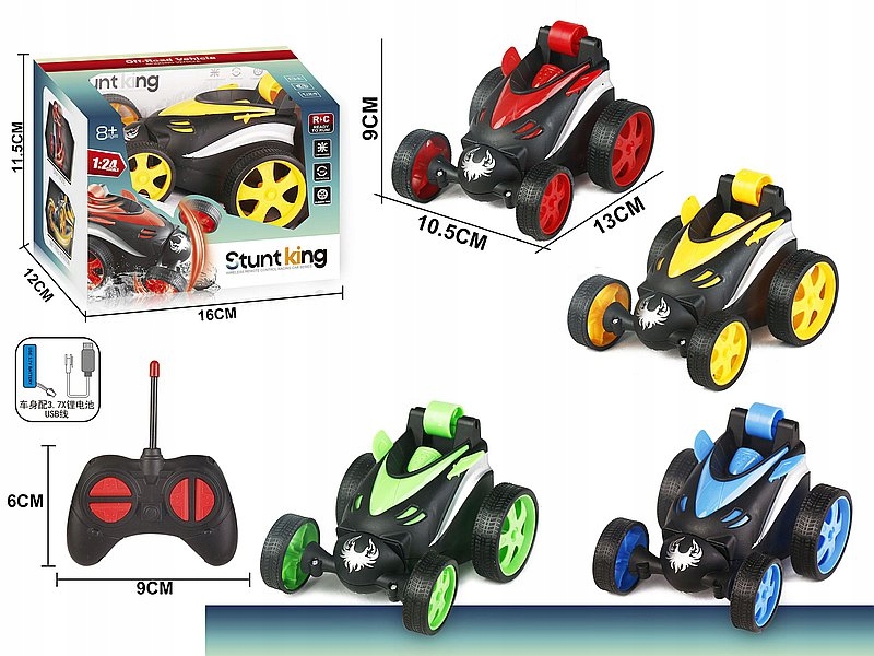 Auto 1:24 na radio 13×10,5x9cm, światła, ładowarka USB; 16x12x11,65cm, W/B