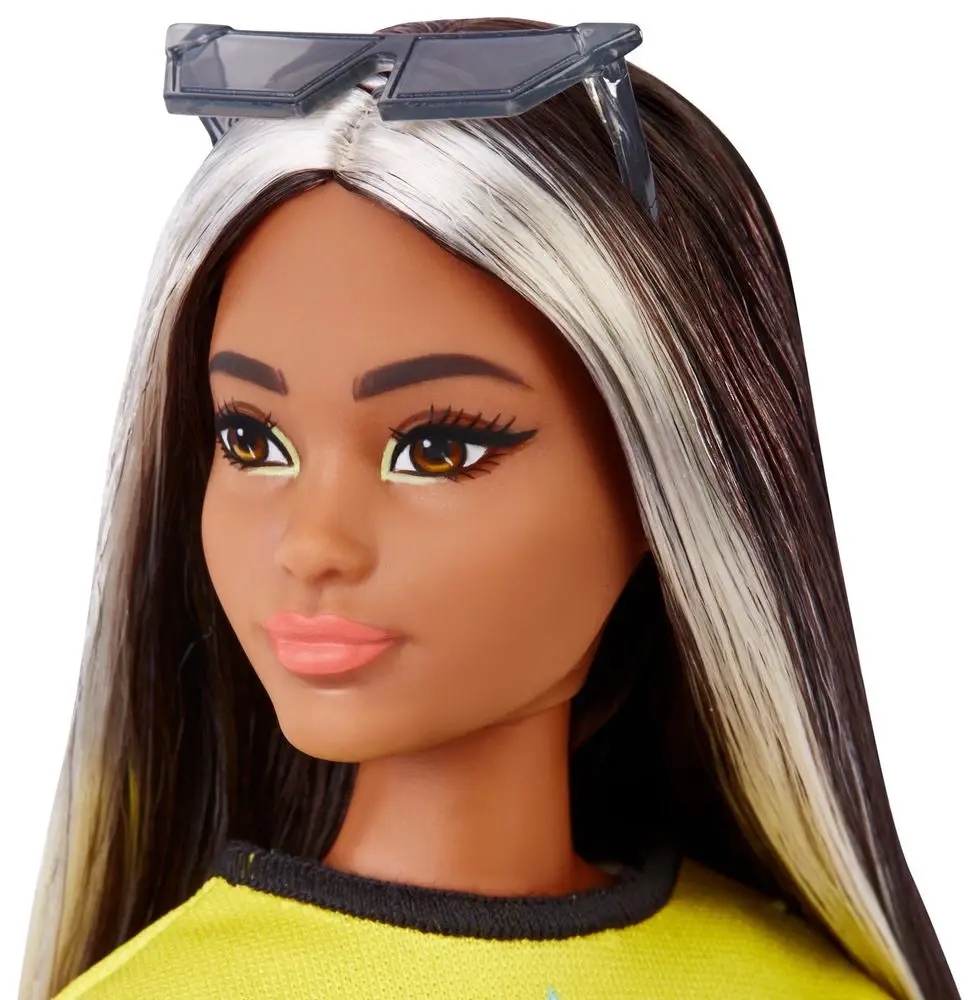 Lubisz lalki z serii Fashionistas? Jeśli tak, mamy dla Ciebie wyjątkowy zestaw. Tym razem jest to Lalka Nr 179! Lalka ma długie, ciemne włosy z jasnymi pasemkami na przodzie i wyrazisty makijaż. Bohaterka ubrana jest w czarno-białą spódnicę w kwadraty i jasnożółtą koszulkę z nadrukiem płomieni. Całości jej stylizacji dopełniają fantastyczne białe, sportowe buty oraz ciemne okulary. Dziewczyna prezentuje się bardzo stylowo i modnie. Już teraz wzbogać swoją kolekcję lalek z serii Fashionistas o bohaterkę numer 179! Laleczka została umieszczona w pięknym, różowym opakowaniu dlatego świetnie sprawdzi się jako prezent dla małej fanki Barbie. Plastikowe opakowanie będzie też idealnym miejscem do przechowywania lalek, gadżetów i akcesoriów z serii.