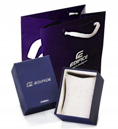 Koperta w kolorze srebrnym z czarnym pierścieniem, bransoleta w kolorze srebrnym.