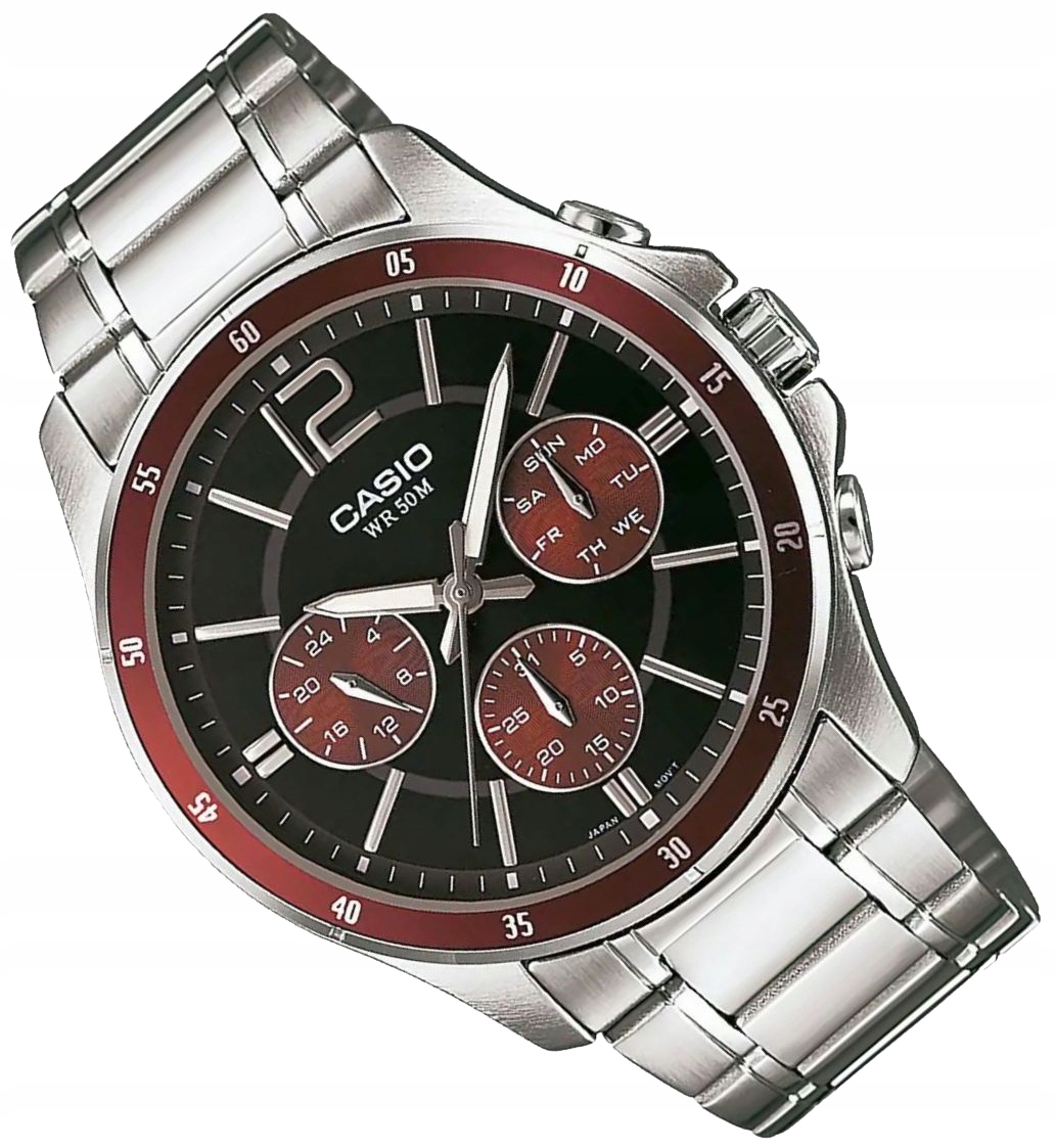 Tarcza zegarka: analogowa, w kolorze czarnym, subtarcze w kolorze brązowym