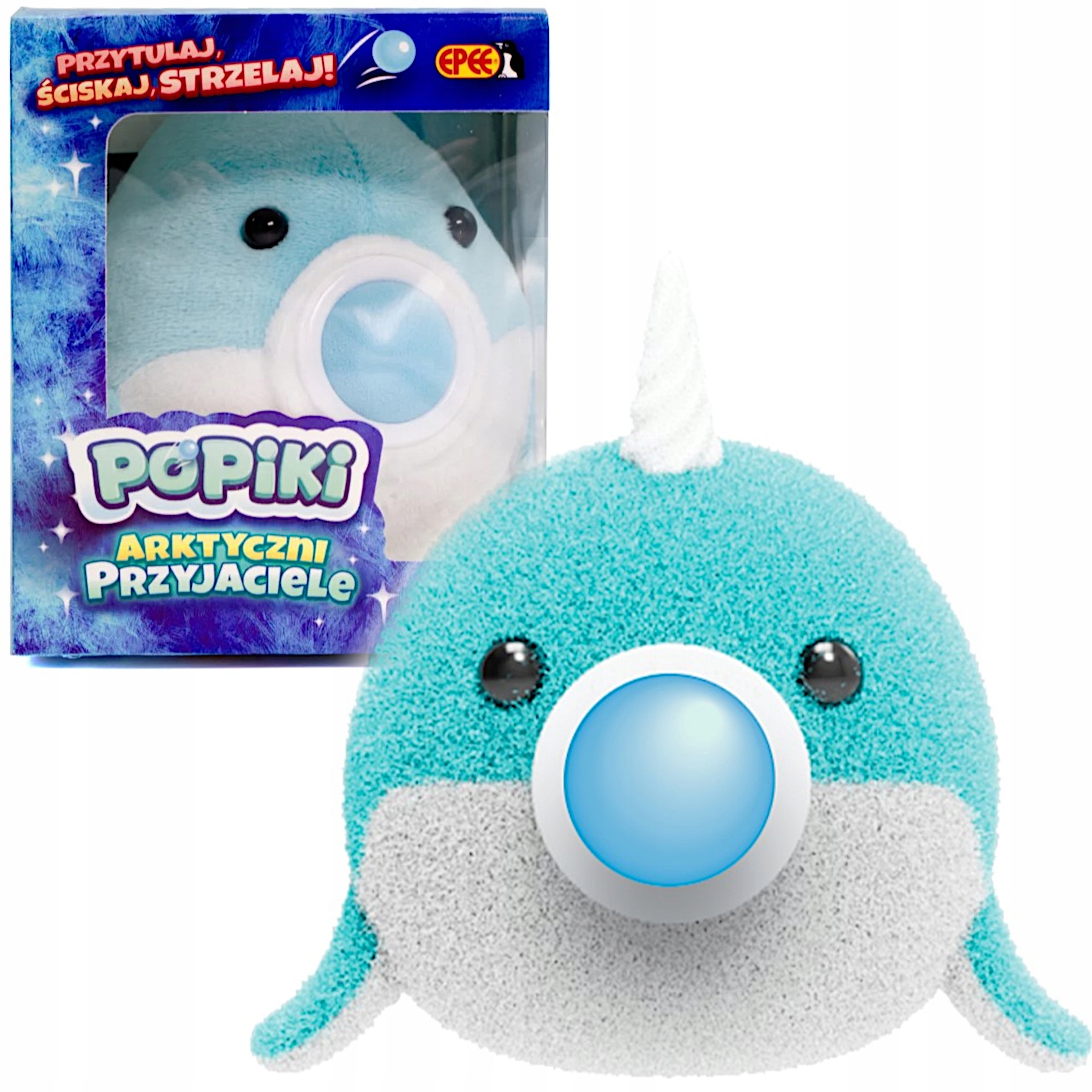 Popiki to urocze, pełne życia pluszaki-zwierzątka, które są idealnymi towarzyszami zabawy dla dzieci w każdym wieku. Każdy Popik z tej serii Arktyczni Przyjaciele ma unikalne cechy i osobowość, które sprawiają, że zabawa z nimi jest jeszcze bardziej ekscytująca. Po naciśnięciu Popika w odpowiednim miejscu, zwierzątko wydaje zabawny dźwięk „pop” i strzela małą piłeczką, co sprawia, że zabawa staje się dynamiczna i pełna radości.