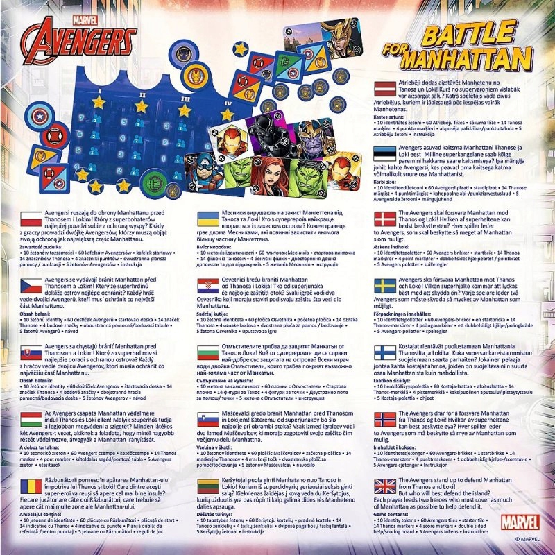 Każdy uczestnik gry otrzymuje w tajemnicy żeton z symbolami dwóch Avengersów. Zadaniem graczy jest zdobyć jak największą część Manhattanu pod kontrolą swoich wylosowanych bohaterów. Czeka na Was emocjonująca rozgrywka, pełna tajemnic i strategii, aby utrzymać bezpieczeństwo miasta!