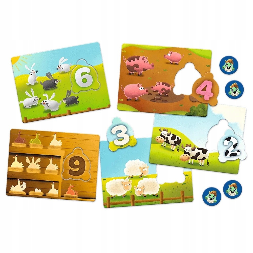 Cyferki – Pierwsze kroki w świecie liczb Cyferki to edukacyjna układanka, która w zabawny sposób wprowadza dziecko w świat liczb. Gra zawiera proste zadania, które ułatwiają opanowanie liczenia do dziesięciu, stanowiąc świetny pierwszy krok do nauki działań matematycznych. Zabawa i nauka w jednym Cyferki to nie tylko zabawa, ale również narzędzie edukacyjne, które w przystępny sposób uczy liczenia. Wyraźne ilustracje ułatwiają dzieciom liczenie poszczególnych elementów, a także szacowanie ich liczby w danym zbiorze. W pudełku z grą Cyferki znajdziemy: 10 planszetek z wyjmowanymi cyframi: Planszetki zawierają kolorowe ilustracje, które ułatwiają dzieciom kojarzenie cyfr z konkretnymi ilościami. Liczmany: Liczmany to małe, kolorowe elementy, które można wykorzystać do liczenia i wykonywania prostych działań matematycznych. Instrukcja z wieloma propozycjami zabaw: Instrukcja zawiera szczegółowe opisy zabaw, które można wykorzystać z grą Cyferki. Gra Cyferki przeznaczona jest dla dzieci, które rozpoczynają przygodę z liczeniem. Jest to idealne narzędzie edukacyjne dla przedszkolaków, które w zabawny sposób uczy podstawowych umiejętności matematycznych.