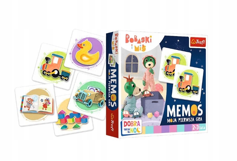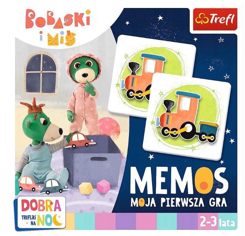 Gra memos z serii “Dobranoc, Trefliki na noc ” to popularna gra ćwicząca pamięć i spostrzegawczość, która podbiła serca graczy na całym świecie. Tym razem do gry zapraszają bohaterowie nowego, animowanego serialu “Bobaski i Miś “. Na ilustrowanych kafelkach memo znajdują się kolorowe przedmioty ze świata Bobasków.