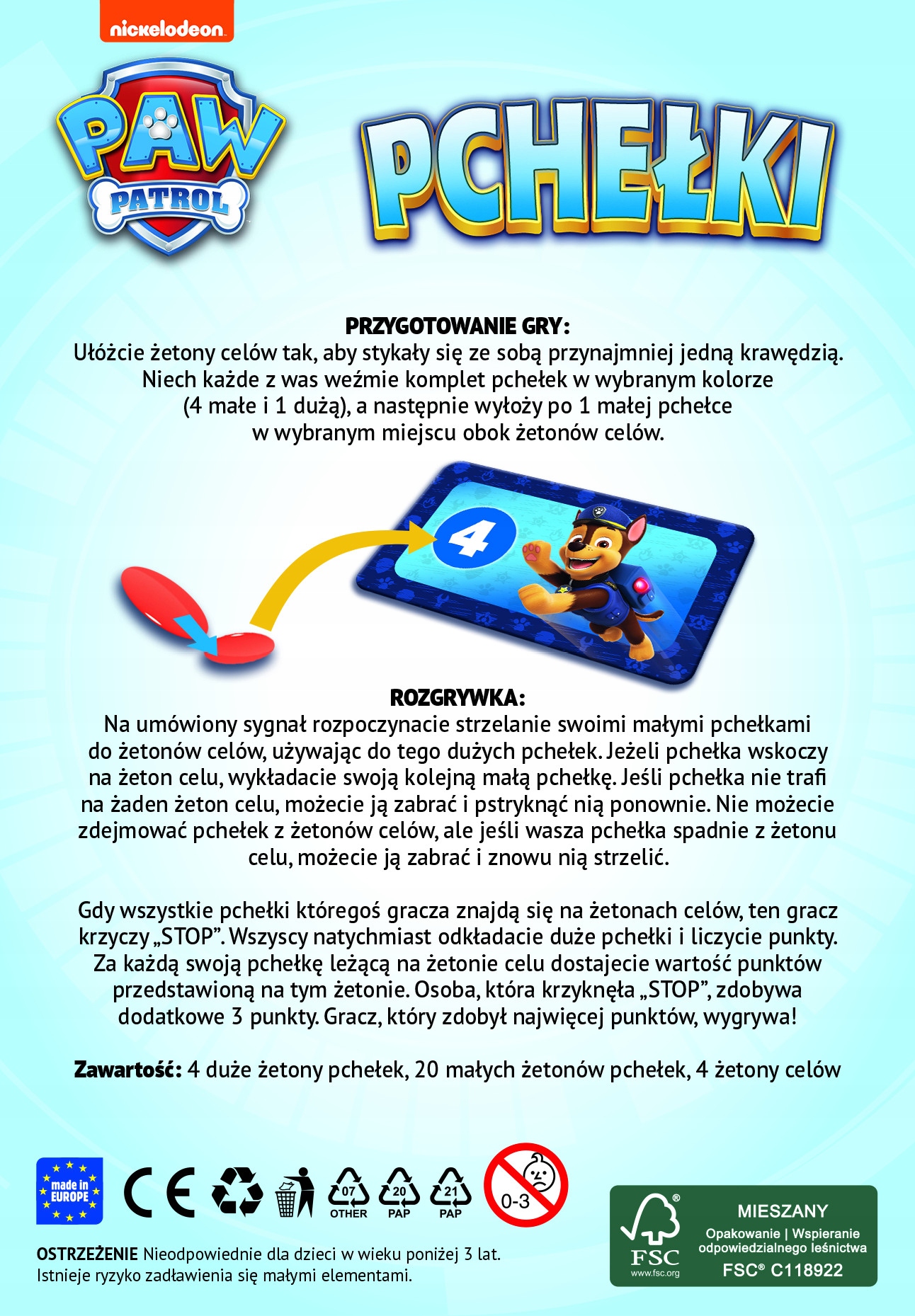 Uczestnicy gry starają się trafić do tarczy z punktowanymi polami strzelając w jej kierunku małymi krążkami (pchełkami). Wygrywa ten, kto po wystrzeleniu całego zapasu pchełek zdobył największą ilość punktów. Oprócz wspaniałej zabawy to świetny trening zręczności, precyzji i cierpliwości.
