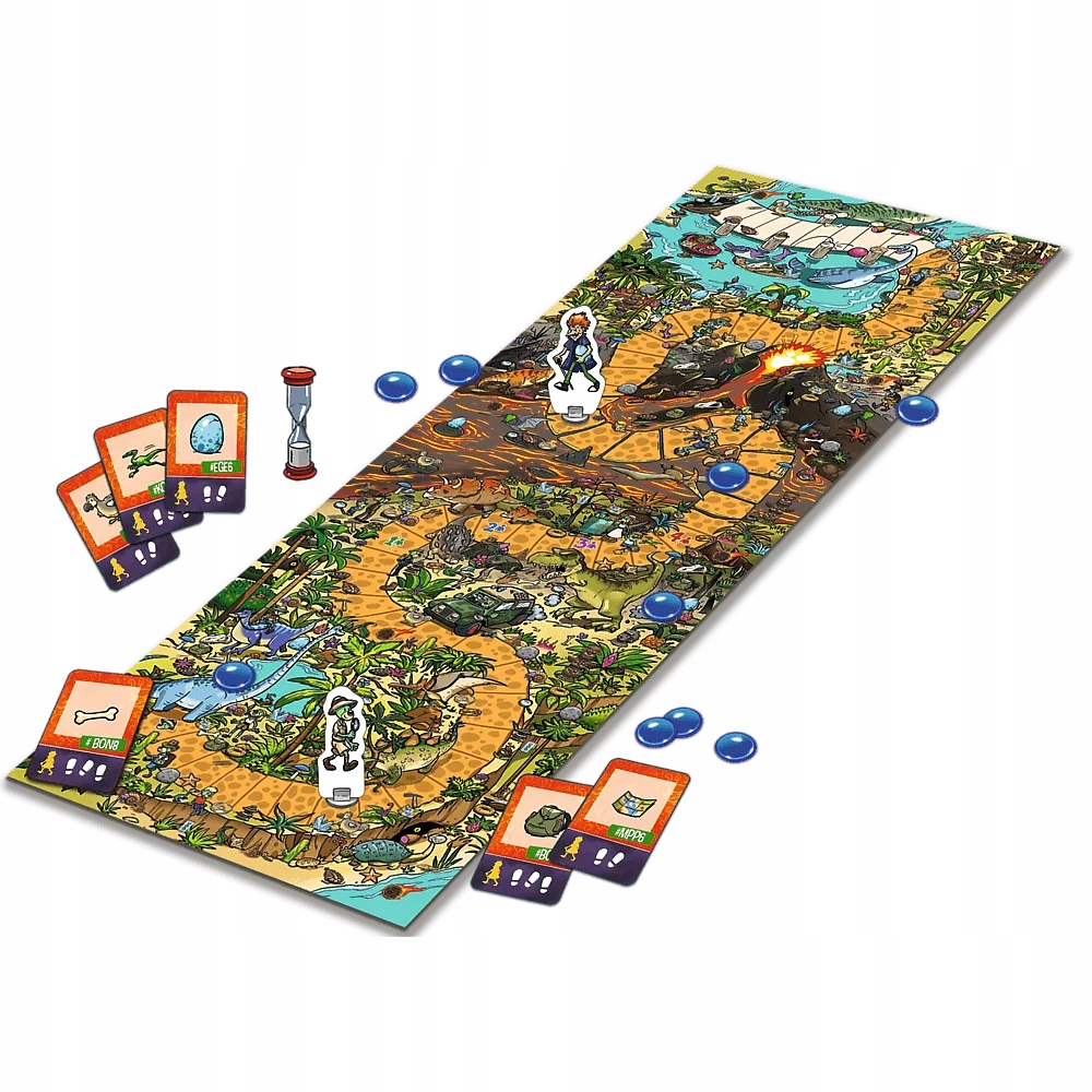 Spy Guy Junior Dinozaury to kooperacyjna gra, w której wcielacie się w rolę młodego detektywa. Spróbujcie schwytać złoczyńcę, nim ten ucieknie z parku dinozaurów z niezwykle rzadkim jajem brachiozaura. Ćwiczcie spostrzegawczość, umiejętność skupienia uwagi i współpracy, poszukując poszlak na barwnej, rysunkowej ponadmetrowej planszy.