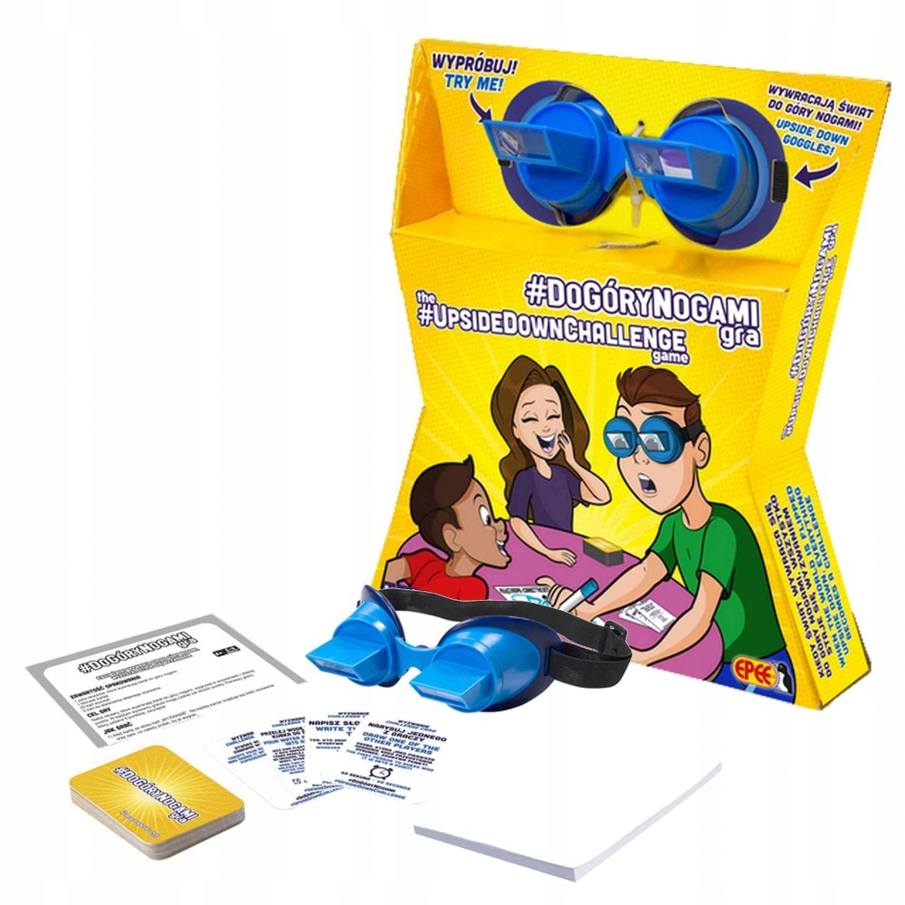 Gra Familijna Do Góry Nogami 03858. Podczas rozgrywki gracze rywalizują ze sobą, wykonując z pozoru proste wyzwania, jak np. zapisanie na kartce swojego imienia, wykonanie papierowej piłeczki i rzucenie jej do przeciwnika czy przybicie piątki. Trudność polega na tym, że na oczach mają okulary, przez które całe otoczenie jest odwrócone do góry nogami! A więc stań do niezwykłej rywalizacji z rodziną i przyjaciółmi. Nałóż okulary z zestawu i przekonaj się, że nawet najprostsze czynności stają się nie lada wyzwaniem, kiedy Twój świat wywraca się do góry nogami!