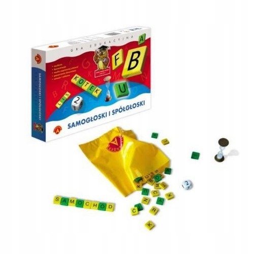 “Samogłoski i spółgłoski” to gra w dwóch wariantach. W pierwszym wariancie każdy z graczy stara się ułożyć z wylosowanych liter wyraz, który będzie zawierał tyle samogłosek ile wskaże wcześniej rzut kostką. Wygra ten kto będzie układał wyrazy najszybciej i najczęściej. W drugim wariancie gracze tworzą nowe wyrazy poprzez dokładanie wylosowanych liter do wyrazu utworzonego na stole. Gra jest bardzo emocjonująca, zmusza do myślenia, uczy poprawnej pisowni i wzbogaca słownictwo