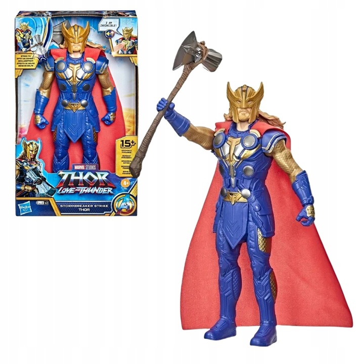 Figurka stoi stabilnie i posiada ruchome ramiona. Thor posiada wyraźnie zarysowane mięśnie i wypustową fakturę stroju. W zestawie znajduje się również młot, który Thor może trzymać w ręce. Figurka została także wyposażona w efekty dźwiękowe. Naciśnij na zloty przycisk znajdujący się na torsie figurki, a usłyszysz dźwięki przypominające burzę.