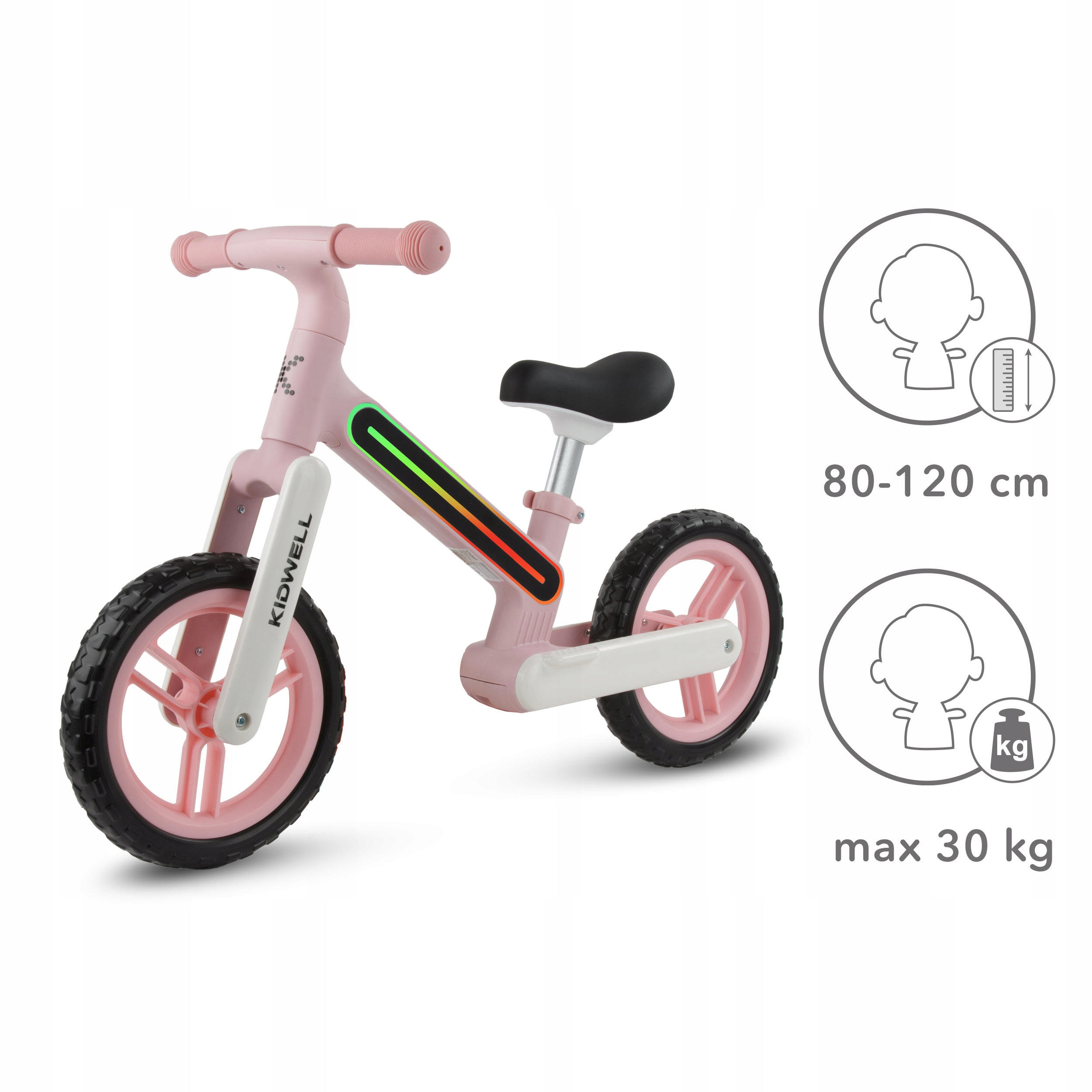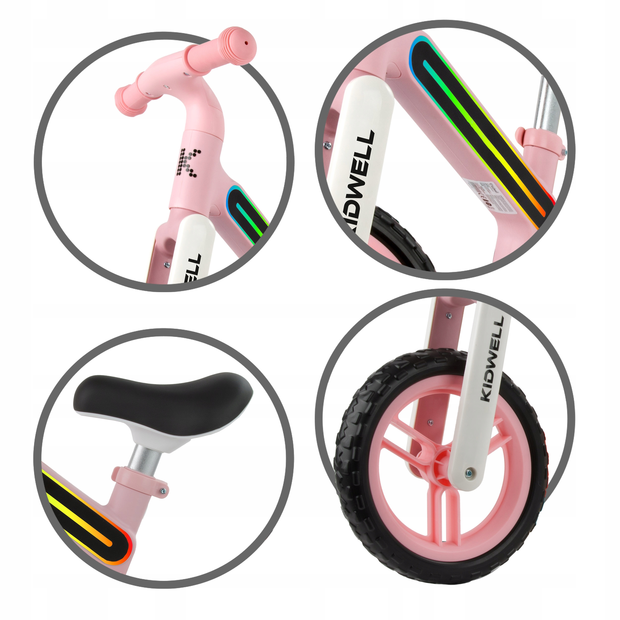 Największą jej zaletą są światła LED, dzięki którym dziecko będzie doskonale widoczne przy gorszej pogodzie oraz gdy na zewnątrz robi się szaro, a zabawa trwa w najlepsze. Zwiększy to bardzo bezpieczeństwo podczas użytkowania. Posiada aż 20 sekwencji świetlnych. Rama dodatkowo wykonana jest z bardzo trwałego nylonu, stosowanego w przemyśle do produkcji odpornych na obciążenia elementów. Dzięki wadze zaledwie 3,05 kg, maluch bez wysiłku uczy się utrzymywać równowagę i usprawnia koordynację ruchową.