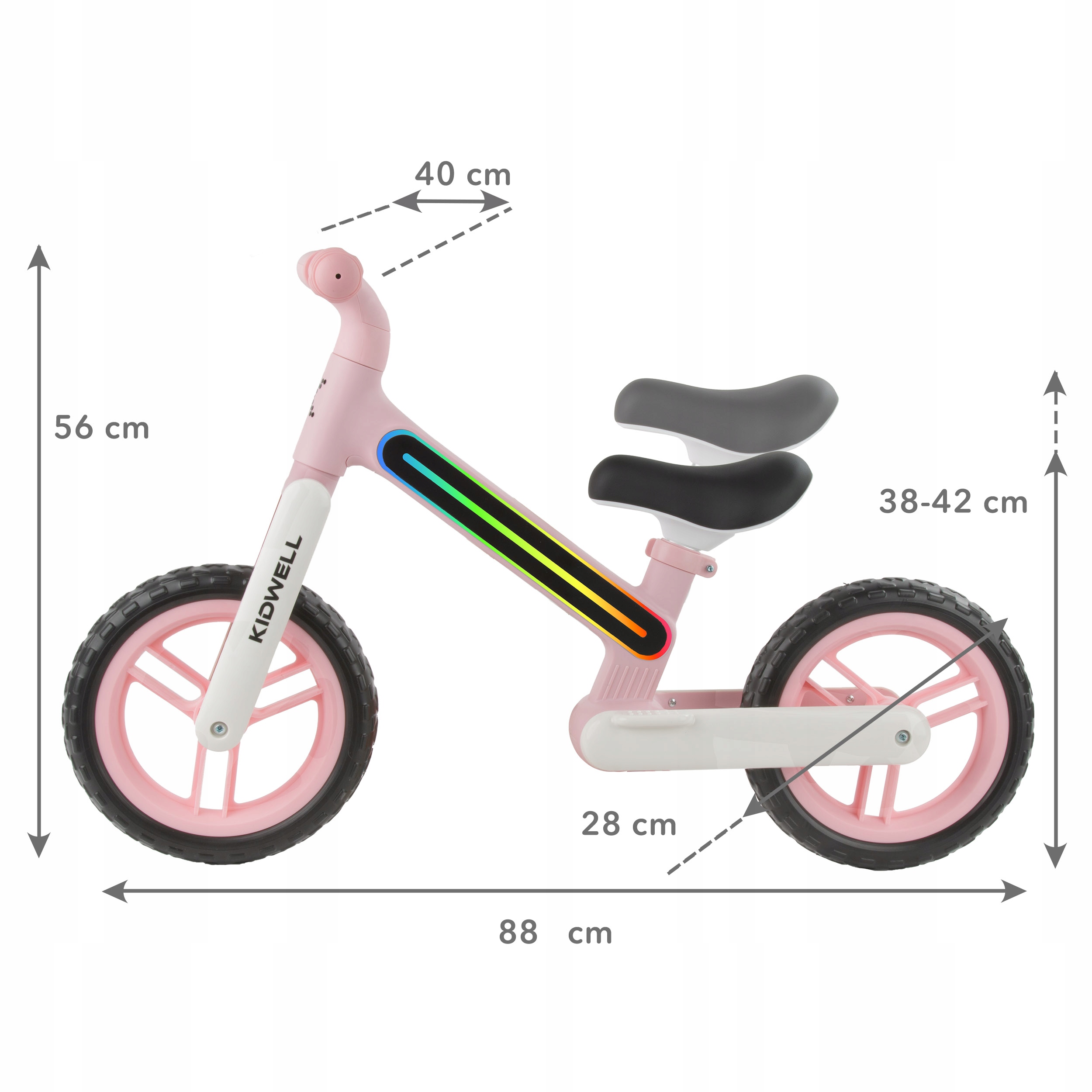 Ergonomiczne siodełko z miękkim wypełnieniem zapewnia wysoki komfort siedzenia, a regulacja wysokości sprawia, że rowerek Kidwell Suno rośnie razem z dzieckiem, dostarczając kilku lat radości z odkrywania świata na dwóch kółkach.