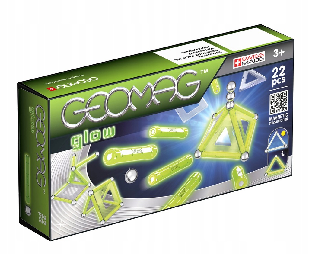 Geomag Glow to seria, która dzięki naświetleniu świeci w ciemności. Dzięki święcącym elementom dekoracyjnym na panelach klocki oferują jeszcze więcej możliwości kreatywnej zabawy. Za pomocą różnorodnych wzorów możesz tworzyć fluorescencyjne konstrukcje rodem z filmów science fiction – ogranicza Cię jedynie Twoja wyobraźnia.