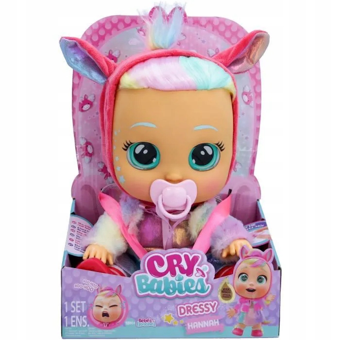 Zawartość: funkcjonalna lalka Cry Babies Dressy Fantasy Hannah