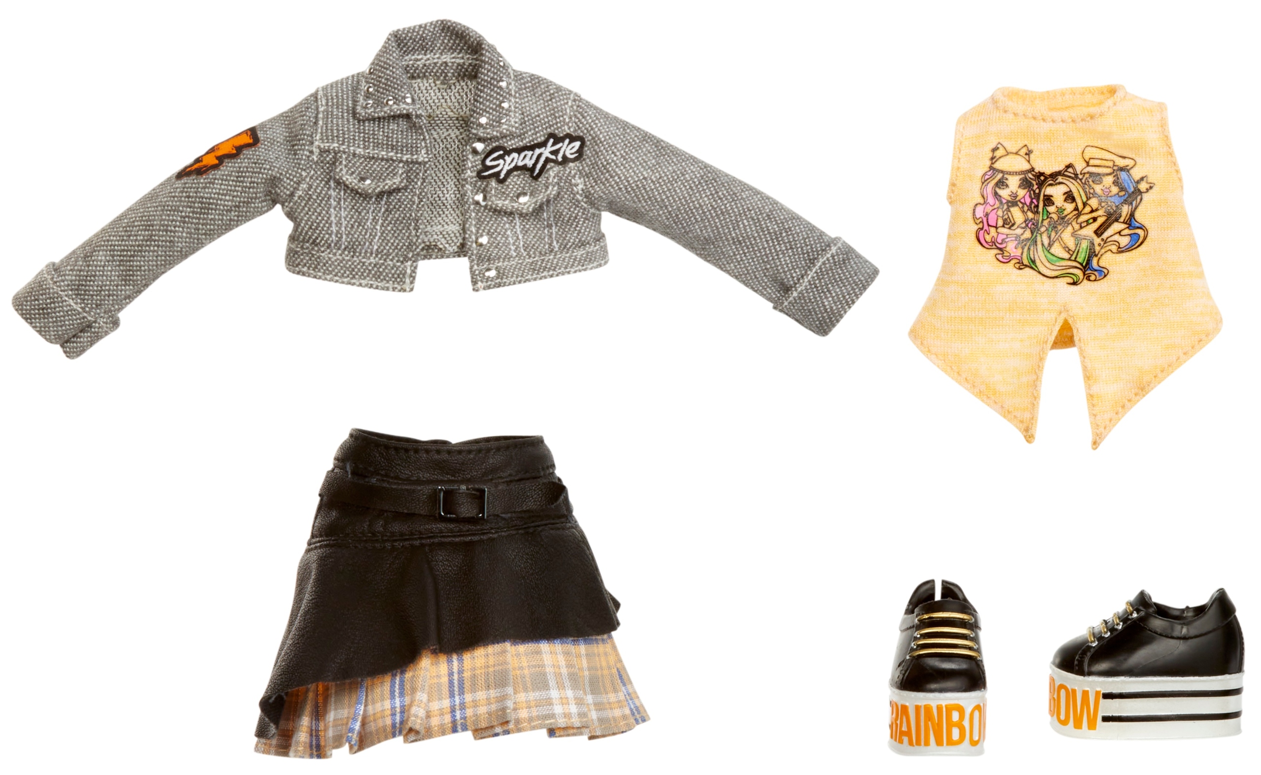 - WSPANIAŁE CECHY: Clementine jest ubrana na pomarańczowo od stóp do głów. Jej strój (dżinsową kurtkę, koszulę i spódnicę), zdobią wspaniałe detale, pasujące trampki i urocza dżinsowa torebka
