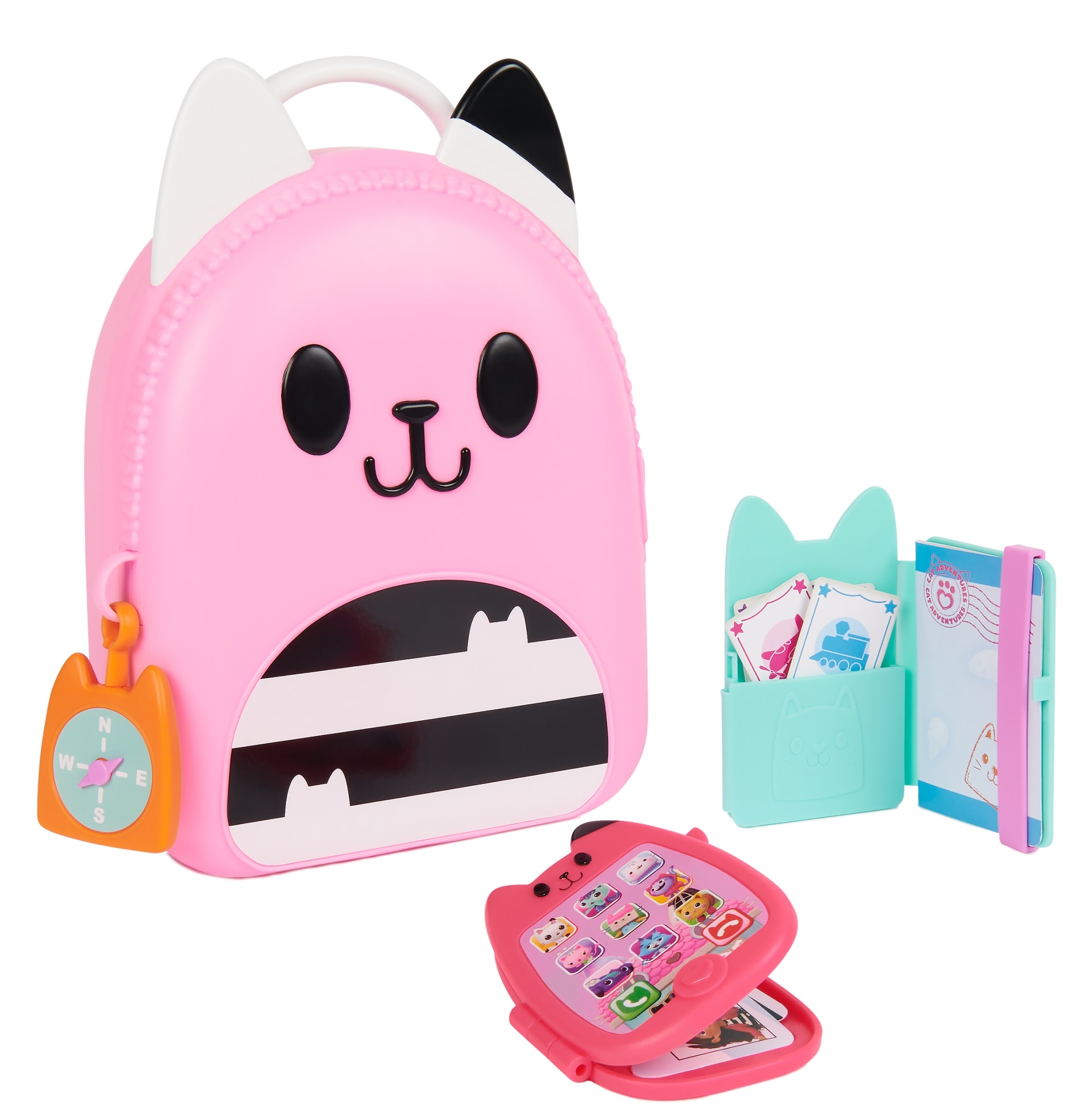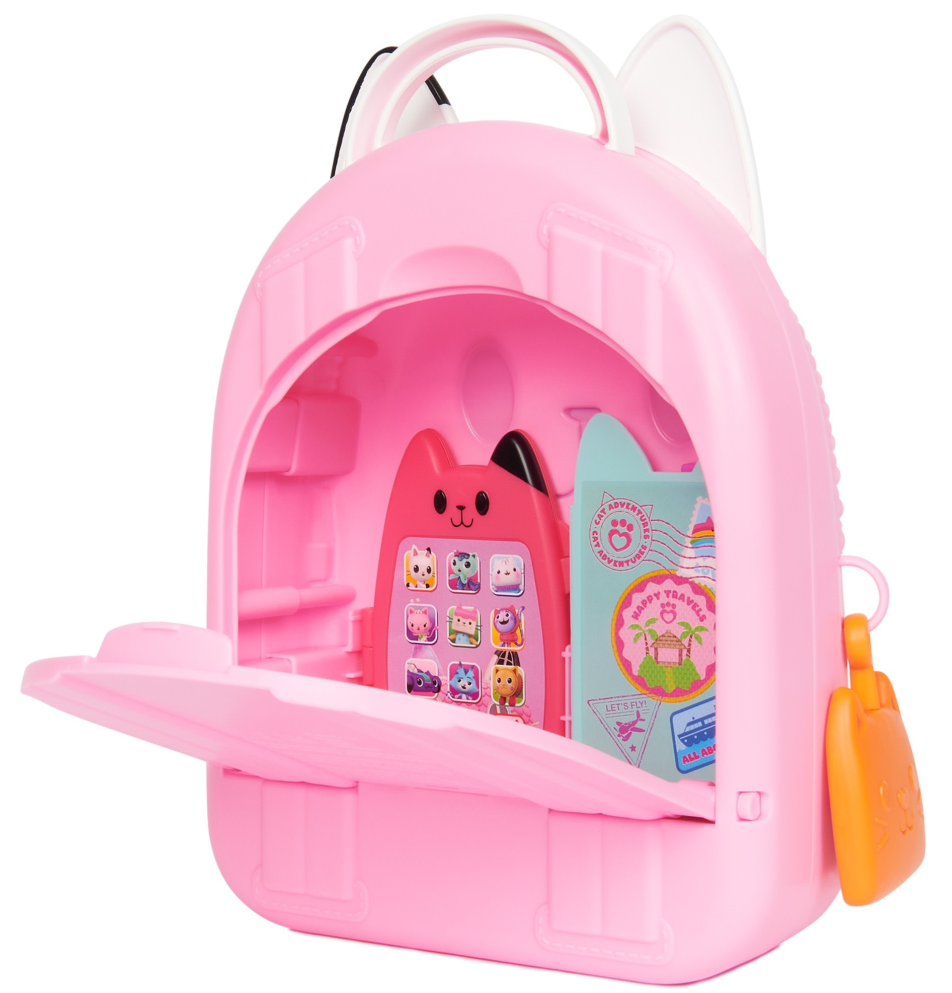 Jeśli chcesz przeżyć jeszcze bardziej ekscytujące przygody w udawaniach, poszukaj aparatu Gabby Kitty Camera, który również mieści się w pojemniku, dzięki czemu możesz robić udawane zdjęcia podczas podróży (Kamerka Kitty sprzedawana osobno).