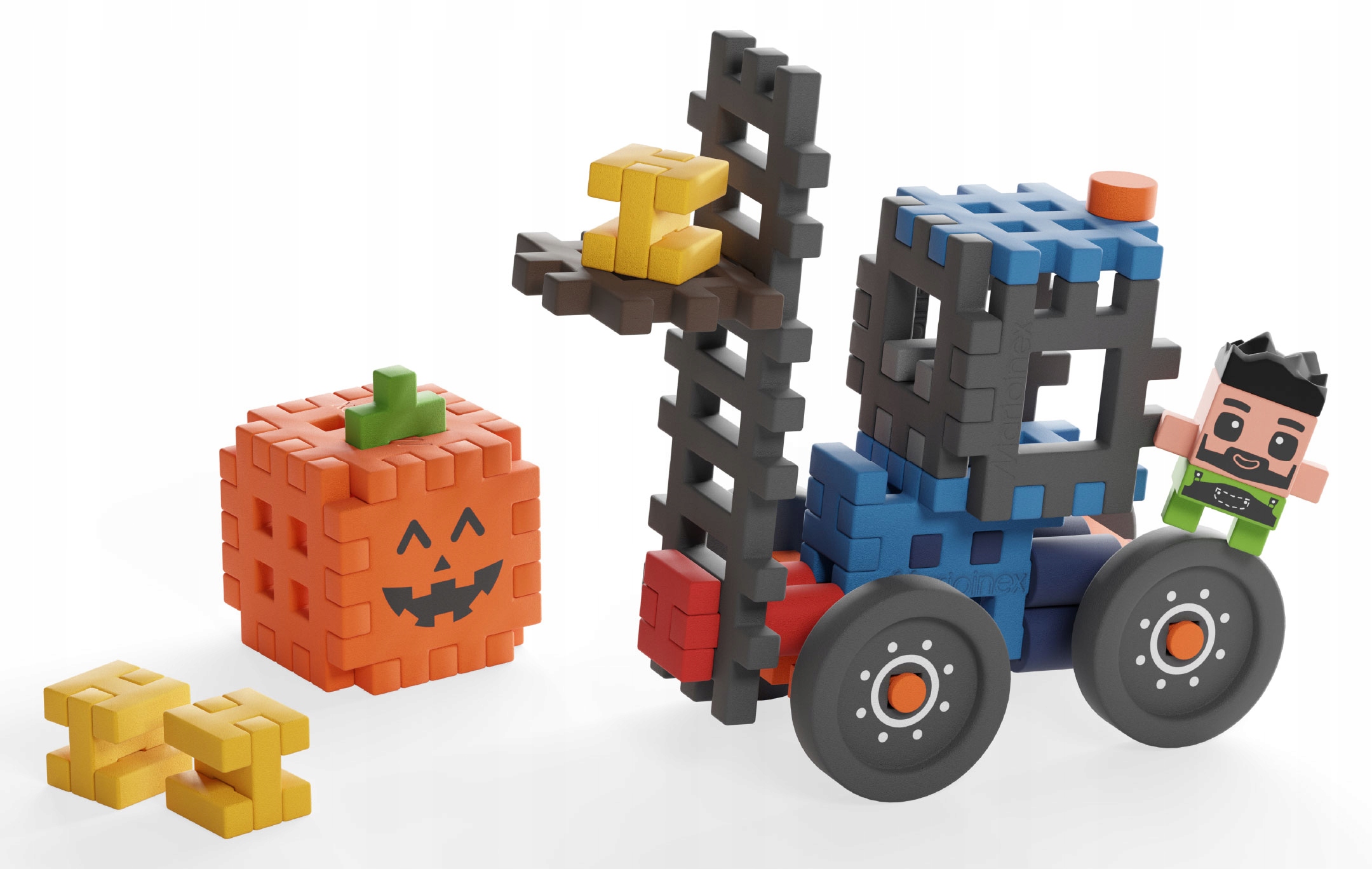W zestawie znajdziesz 50 elastycznych, kolorowych elementów, z których stworzysz model wózka widłowego oraz figurkę Jacka. Ruchome widły, duże koła i stabilna konstrukcja sprawiają, że zabawa staje się jeszcze ciekawsza i bardziej dynamiczna.
