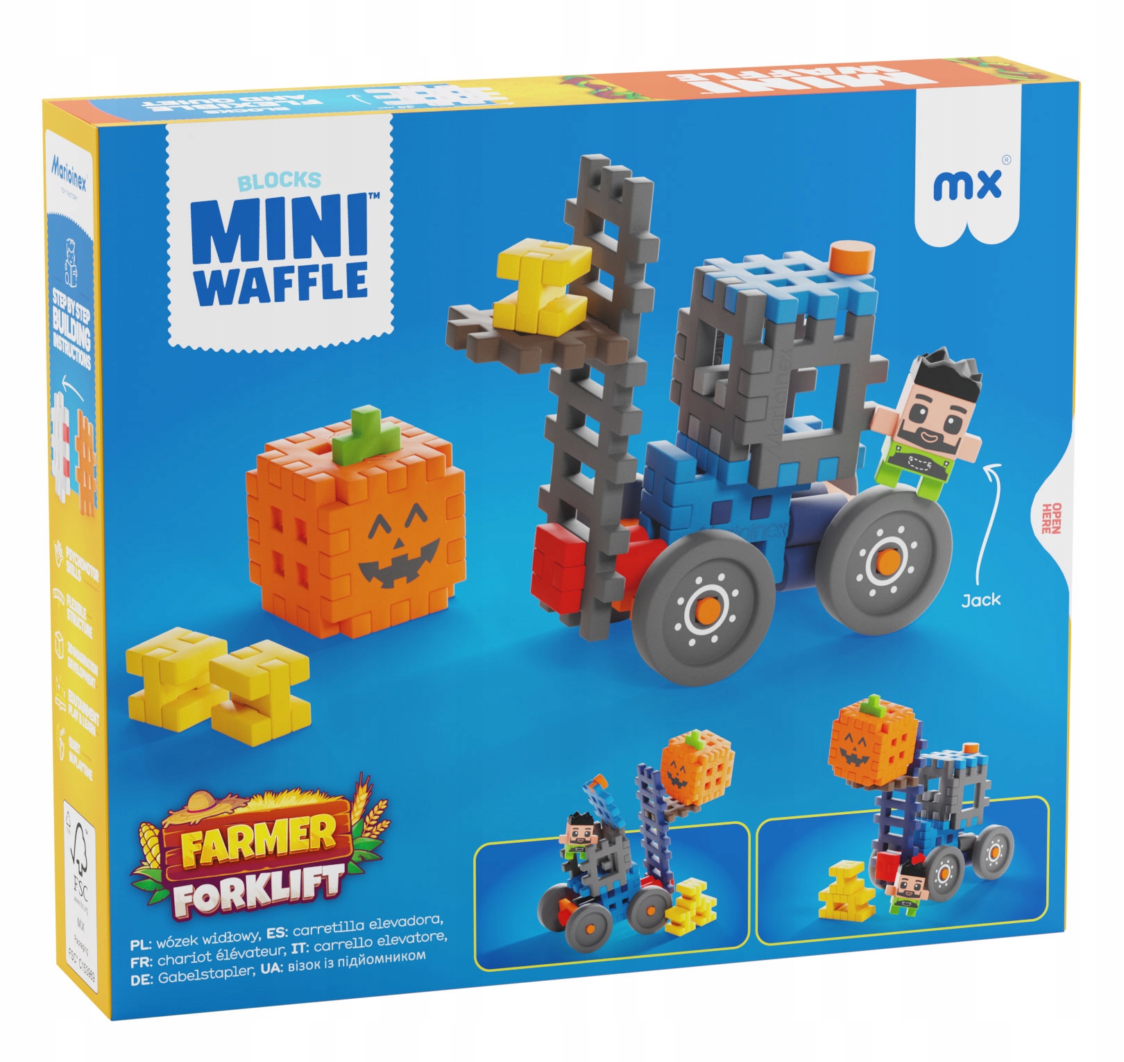 Zestaw Mini Waffle Farmer – Wózek widłowy przenosi dzieci do świata wiejskiej organizacji pracy. Dzięki niemu mogą wcielić się w rolę Jacka i zadbać o to, by każdy element gospodarstwa był na swoim miejscu. Przenieś dynię, załaduj skrzynkę albo ułóż wszystko w magazynie – to Ty decydujesz, co dziś trzeba zrobić!