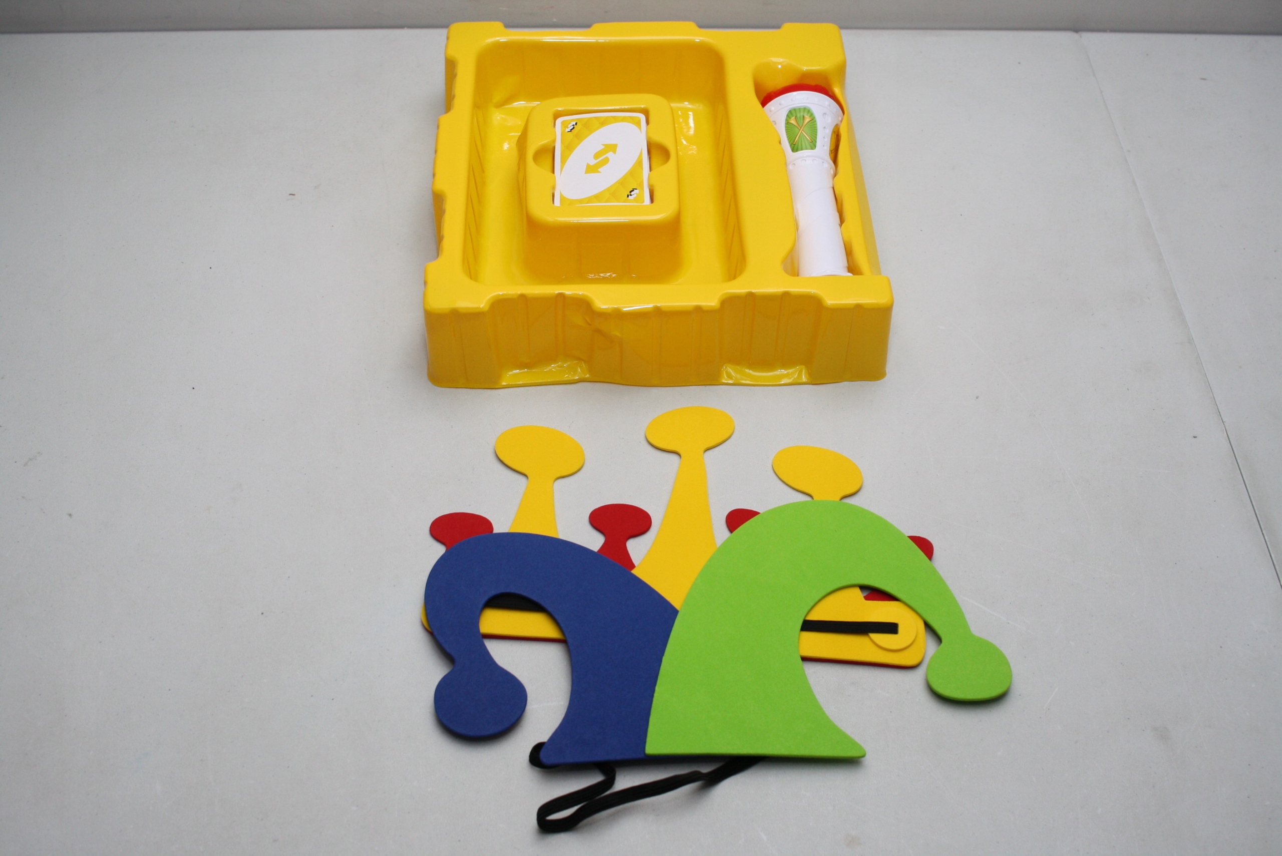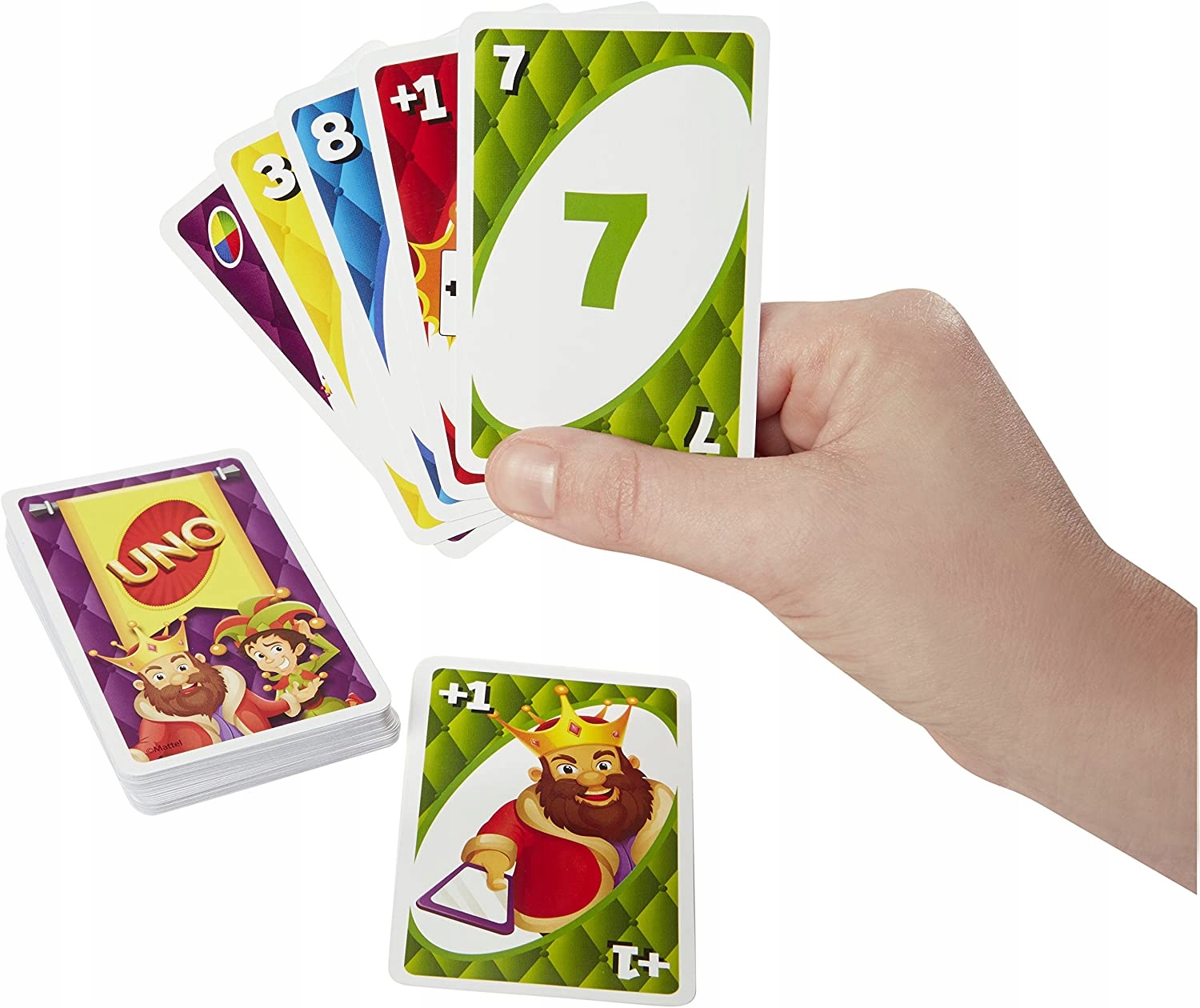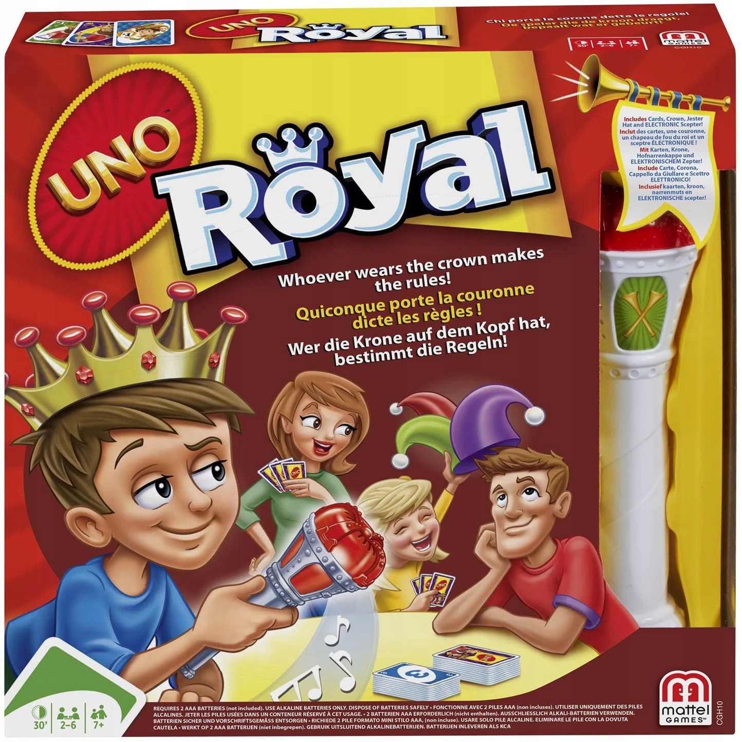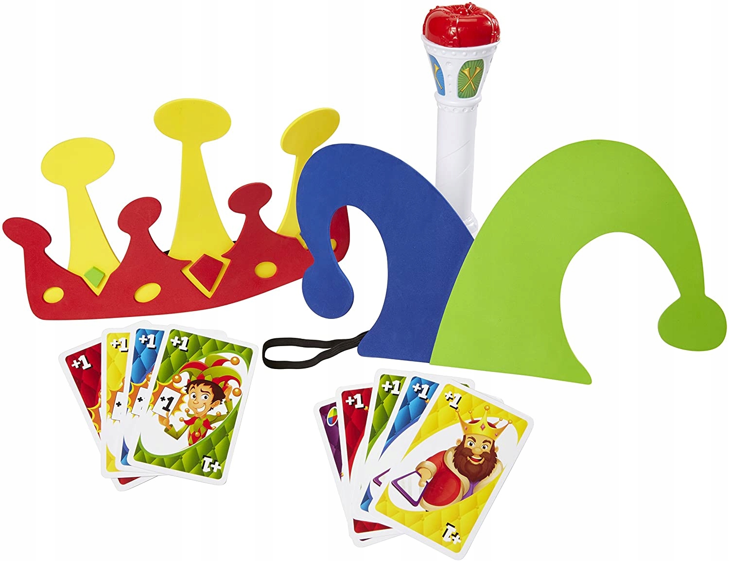NO™ Royal Revenge™ to zupełnie nowy sposób na granie w swoją ulubioną grę karcianą – wraz z koroną króla, kapeluszem błazna i berłem królewskim! Podobnie jak w klasycznym UNO™, celem gry jest bycie pierwszym graczem, który pozbył się wszystkich swoich kart. Po dodaniu korony, kapelusza błazna i specjalnych kart akcji gracze otrzymują zupełnie nowy sposób kontrolowania rozgrywki. Nowe karty akcji Royal Revenge dodają wszystkie nowe momenty zmieniające grę, które będą trzymały wszystkich w napięciu! Każdy, kto gra, ma szansę zostać królem – ale nigdy nie wiesz, kiedy przyjdzie kolej na Ciebie! Jeśli zostaniesz koronowany, będziesz decydował, kto ma nosić kapelusz błazna, który gracz musi dobrać karty i jaki kolor ma karta Dzikich. Ale króluj ostrożnie – nigdy nie wiesz, kiedy berło królewskie odegra fanfarę i zasygnalizuje koniec twojego panowania! Dzieci będą miały poczucie dumy i pewności siebie, gdy wykonają strategiczny ruch lub wygrają grę. Cała rodzina podzieli się niezapomnianymi chwilami głupoty, nieprzewidywalności, oczekiwania i, oczywiście, śmiechu!