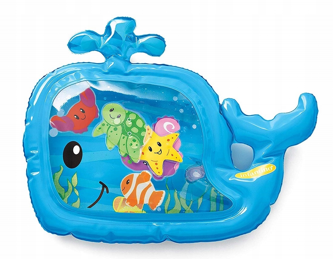 Wodna mata wieloryb doskonała do zabawy, gdy dziecko leży na brzuszku lub siedzi na krzesełku. Wieloryba wypełniamy wodą. W środku znajduje się 6 morskich zwierzątek, które będą unosić się na wodzie i przemieszczać się, gdy dziecko naciśnie na matę.