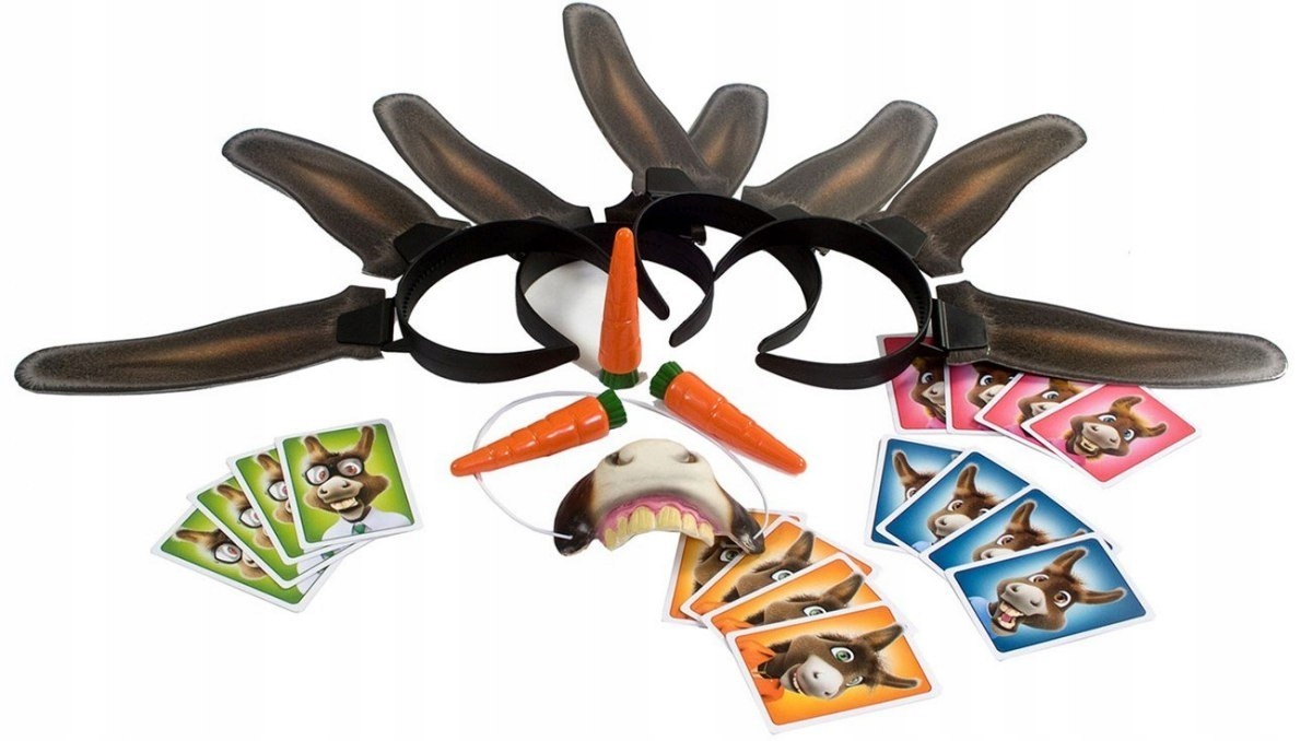 Gracze dzielą kolorowe karty między siebie, zakładają opaski z uszami osiołka i starają się złapać marchewkę zanim zrobią to pozostali uczestnicy. Ale uwaga! Marchewek jest zawsze mniej niż uczestników, więc trzeba się wykazać nie lada refleksem i spostrzegawczością! Jeśli Ci się uda, jesteś bezpieczny. Jeśli jednak nie zareagujesz szybko, zaczynasz zmieniać się w osiołka! Najpierw stawiasz jedno ucho, potem drugie, a na końcu zakładasz ośli nosek. Przegrywa ten, kto pierwszy zostanie osiołkiem.