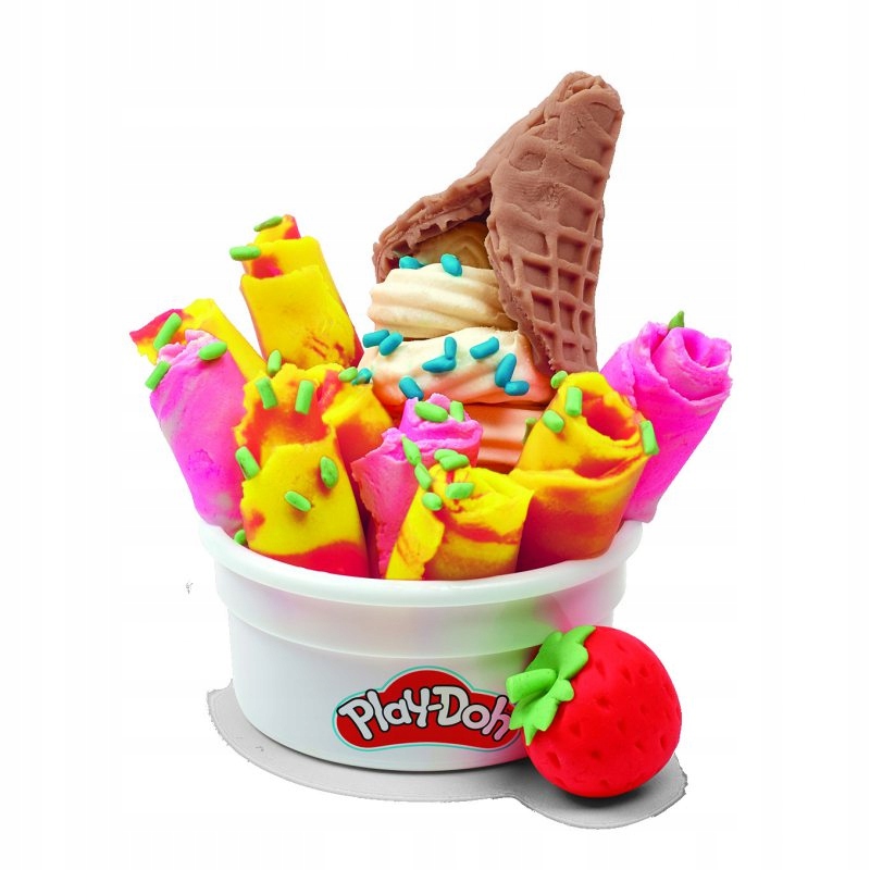 Play-Doh to ciastolina, czyli miękka masa plastyczna, dzięki której wszystkie dzieci mogą wyczarować co tylko sobie wymarzą! Każdy znajdzie tu coś dla siebie: są samochody i domki, zwierzaki i figurki ludzie oraz wiele innych akcesoriów, które sprawią, że zabawa z Play-Doh dzieciom się nie nudzi! Tyle pomysłów kryje się w małym tekturowym pudełeczku! Play-Doh to od ponad 40 lat zabawka kreatywna numer 1 na świecie – rozwijajcie swoją wyobraźnię, kreatywność i sprawność manualną z Play-Doh! Play-DohLody w waflach zestaw E8055