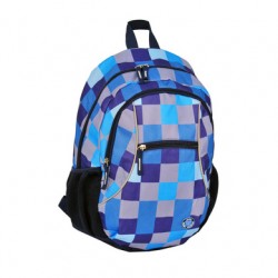 Plecak posiada dwie duże komory zamykane na zamek błyskawiczny i jedną mniejszą na froncie. Dodatkowo po bokach zamontowane zostały kieszenie siatkowe zakończone ściągaczem. Plecak ma wyprofilowane i usztywnione plecy a szelki posiadają możliwość regulacji.