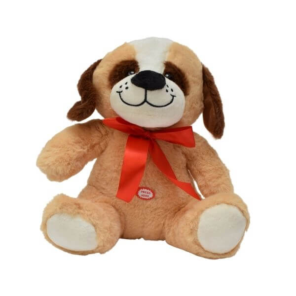 PLUSZAK MASKOTKA PIES PIESEK UŚMIECHNIĘTY SIEDZĄCY Z DŹWIĘKIEM 26 CM