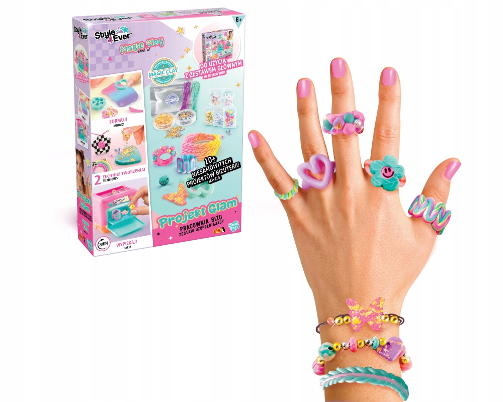 Rozwiń swoją kolekcję biżuterii z zestawem uzupełniającym do Pracowni Biżu. Dzięki specjalnej masie plastycznej stworzysz modne pierścionki, bransoletki i zawieszki – dokładnie takie, jakie sobie wymarzysz.