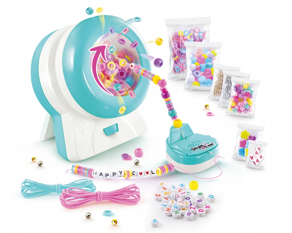 Chcesz dodać imię, hasło lub specjalną wiadomość dla przyjaciółki? Wystarczy zatrzymać maszynkę, ręcznie nawlec koraliki z literkami i… wrócić do zakręconej zabawy!