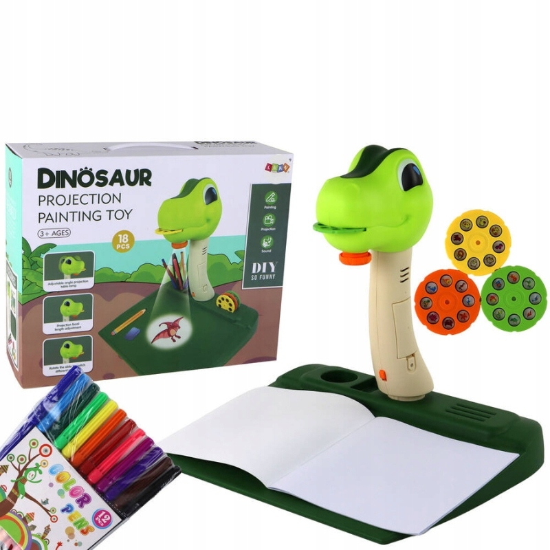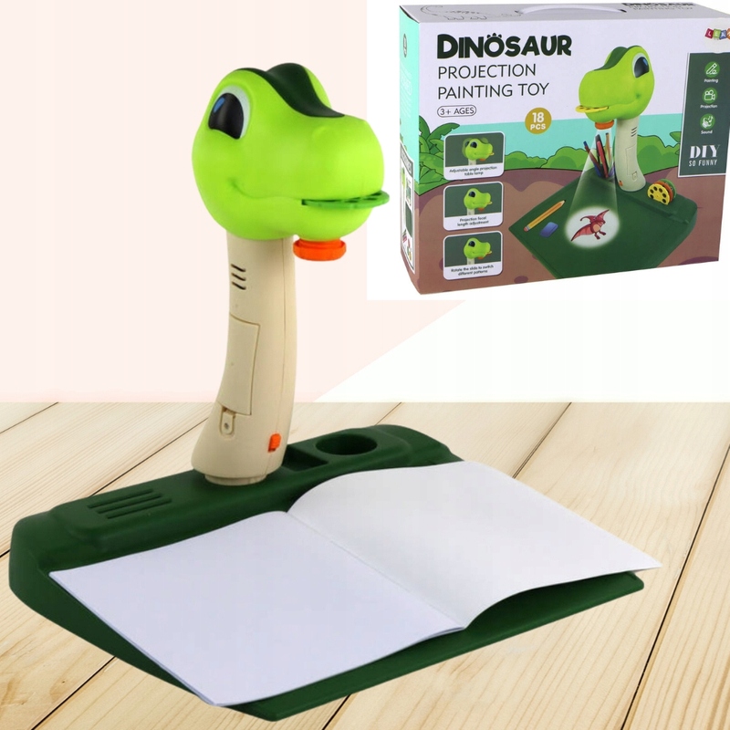 Rozpocznij niezapomniane chwile kreatywności i edukacji dzięki wyjątkowemu Projektorowi Stolikowi Do Rysowania Dinozaur w odcieniach zielonego!