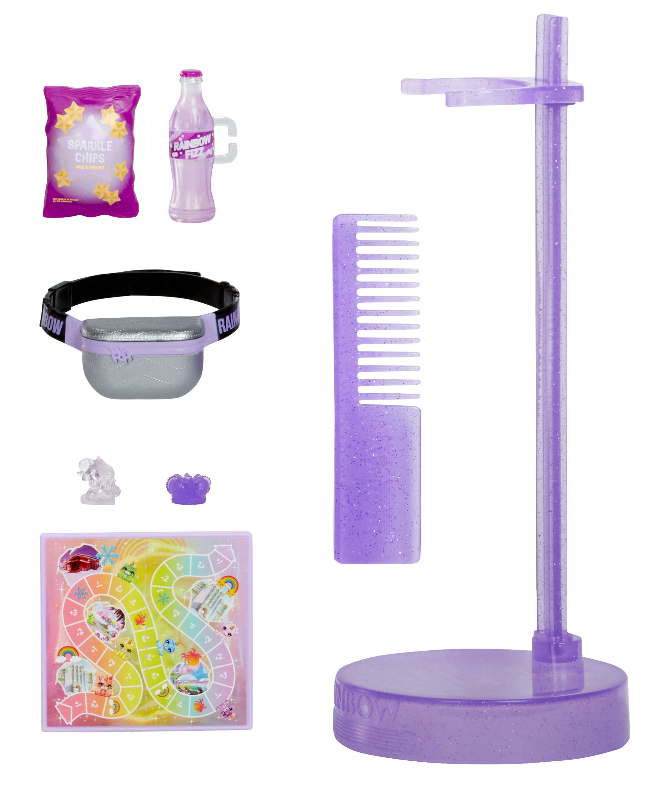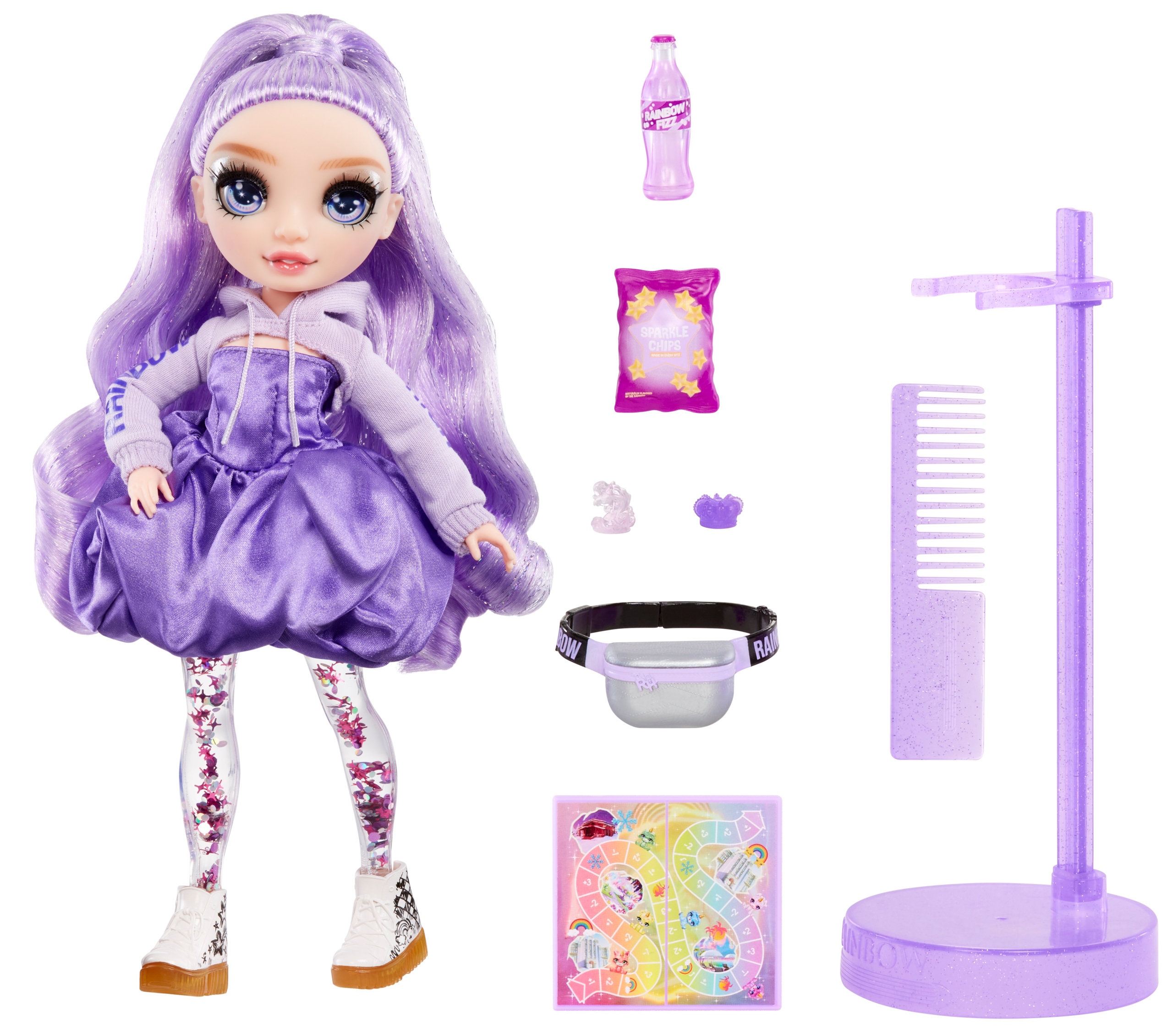 - OSOBISTE AKCESORIA DO OPOWIADANIA HISTORII: Viola uwielbia grać w gry planszowe, podjadając swoje ulubione przekąski: iskrzące chipsy i tęczowy napój gazowany