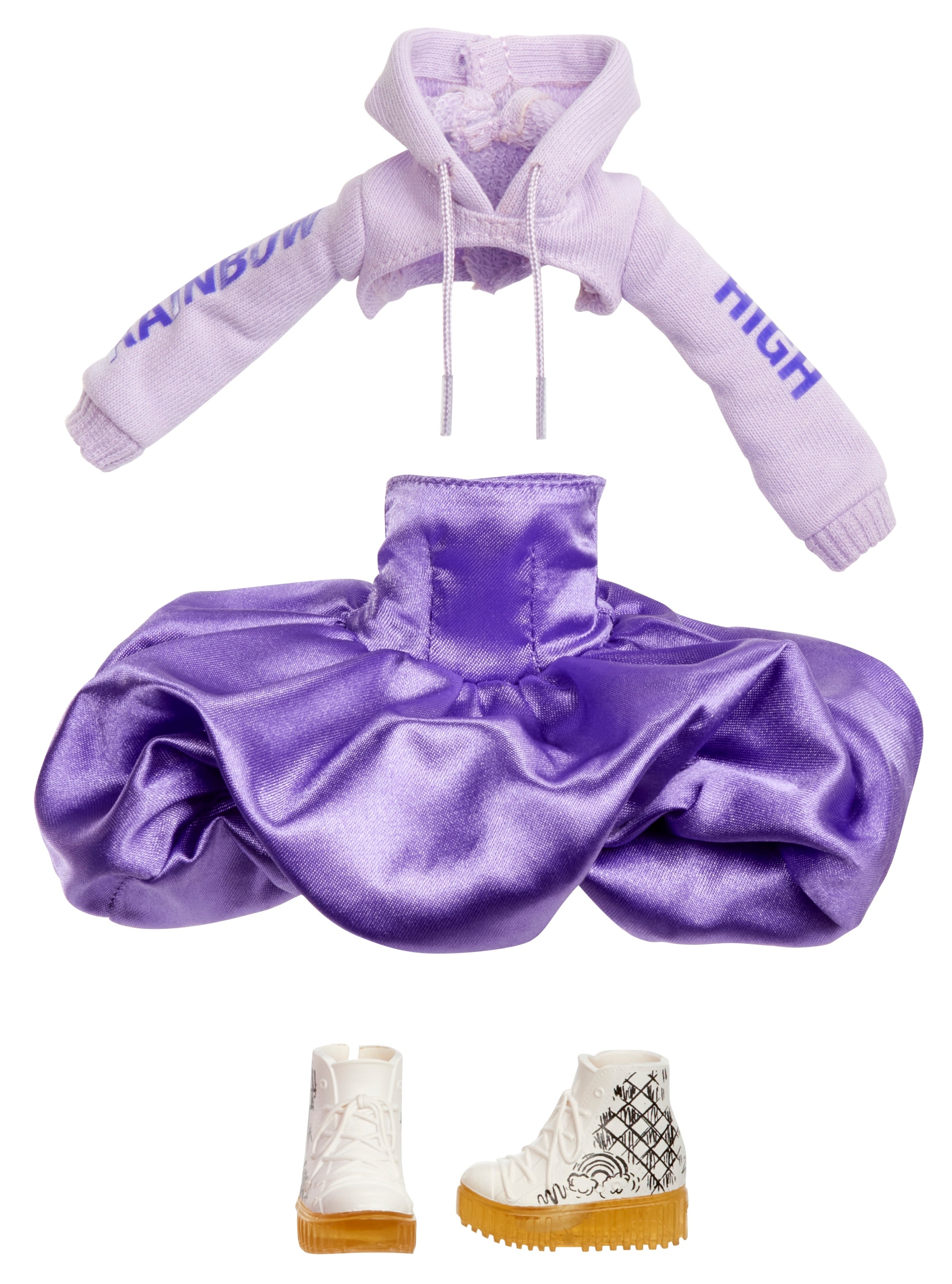 - WSPANIAŁE CECHY: Viola jest ubrana na fioletowo od stóp do głów. Jej strój (bluzę z kapturem i sukienkę), zdobią wspaniałe detale, pasujące wysokie trampki i saszetka