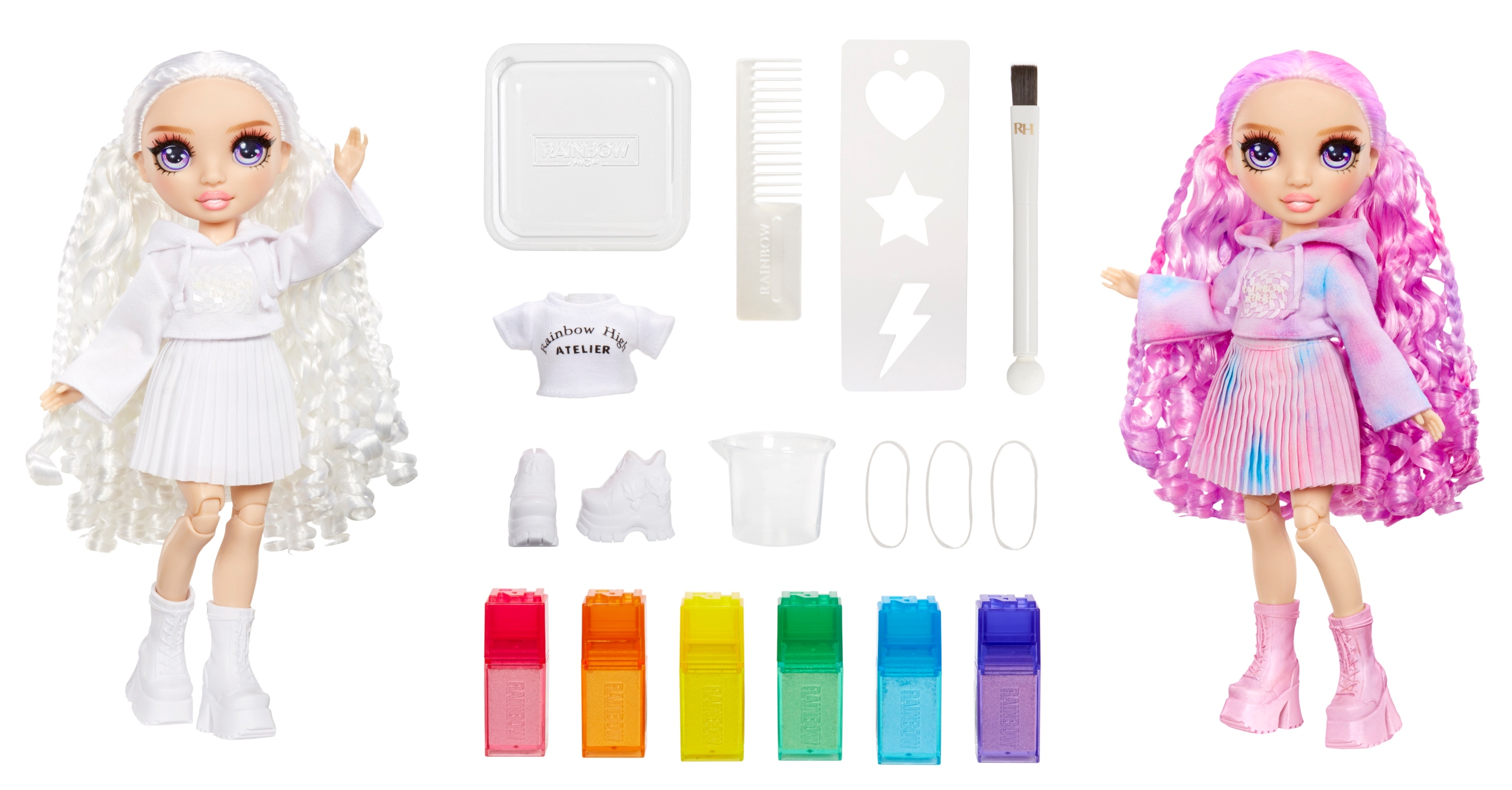 Rainbow High Watercolor & Create – teraz możesz bez końca projektować swoją lalkę RH! Odkryj dziewczynę w białym stroju, który możesz kolorować za pomocą zmywalnych farbek. Baw się modą, jak nigdy wcześniej!