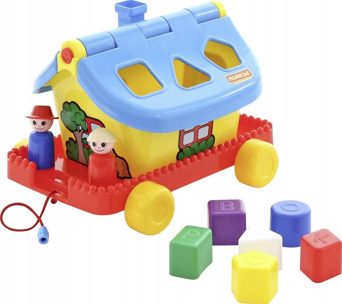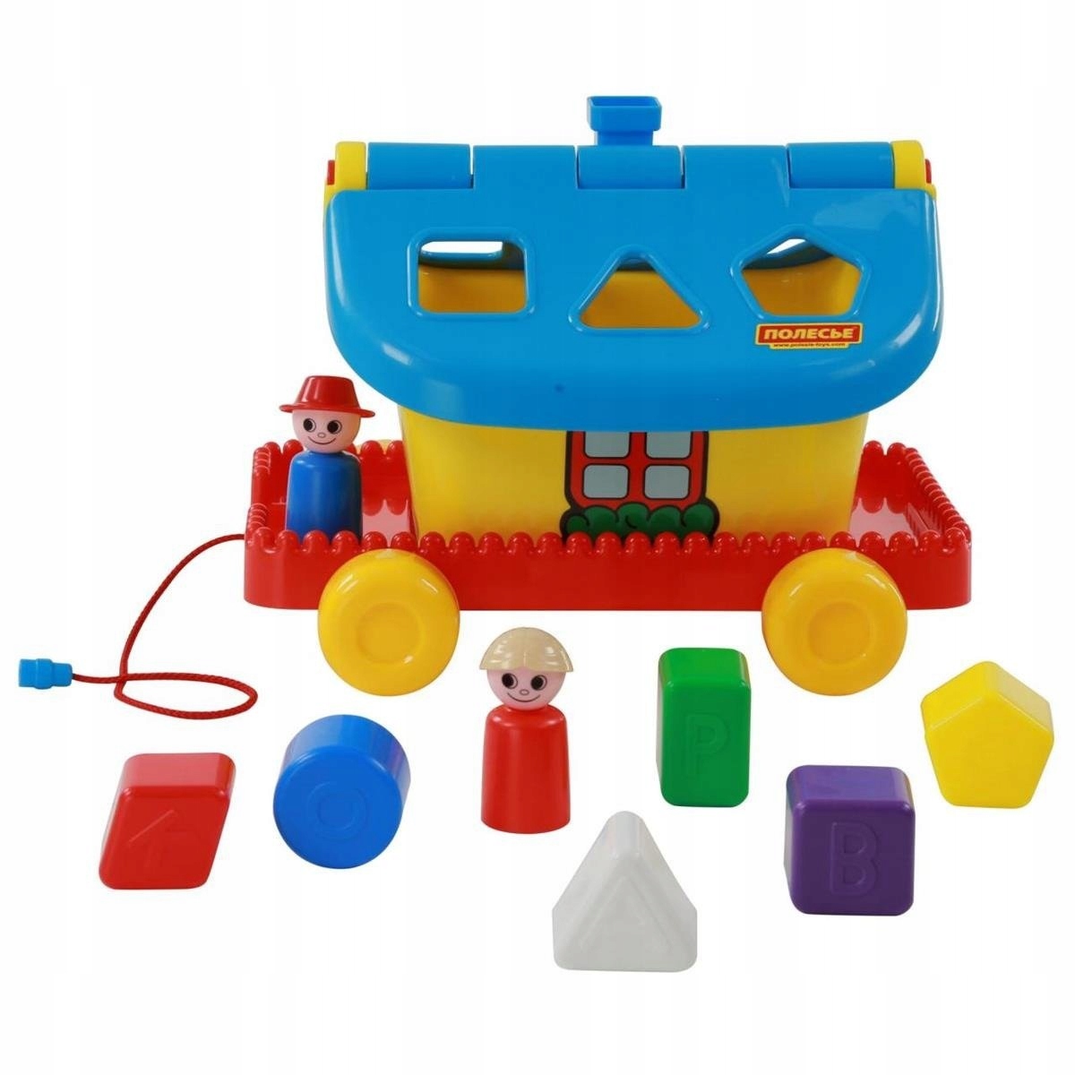 Kolorowy, prosty DOMEK OGRODNIKA na kołach od firmy POLESIE jest idealnym nauczycielem podczas poznawania podstawowych kształtów i kolorów przez najmłodsze dzieci. Zestaw zawiera sześć kolorowych klocków, które małe rączki naszej pociechy mają za zadanie umieścić w odpowiednich otworach umiejscowionych na dachu domku. DOMEK OGRODNIKA umieszczony jest na podstawce z czterema kołami i udekorowany naklejkami (okna, drzwi) oraz kominem. Daszek podzielony jest na dwa skrzydła. Każde z nich można otwierać oddzielnie. Dodatkowo do zestawu dołączono figurki dwóch postaci i sznurek.
