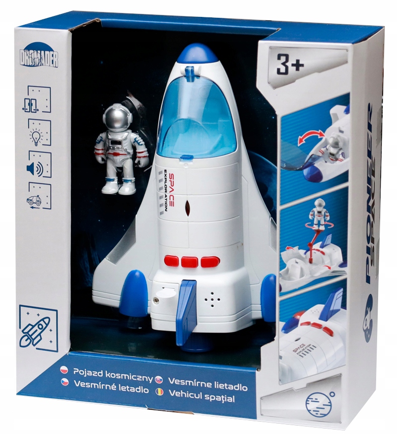 Samolot napędzany jest napędem “Pull-back” ( naciągnij do tyłu i puść) samolot sam pojedzie do przodu. W zestawie dołączony astronauta którego można posadzić w kokpicie jak również można go umocować na wysięgniku .