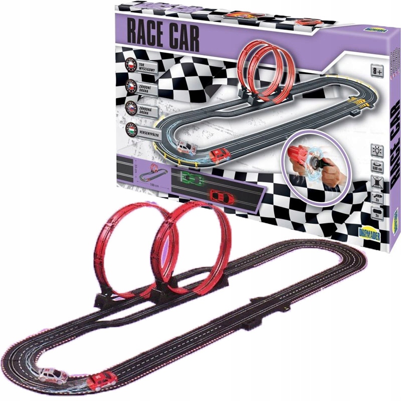 - Długi i fantastyczny tor samochodowy w zestawie z dwoma autkami i dwoma kontrolerami.