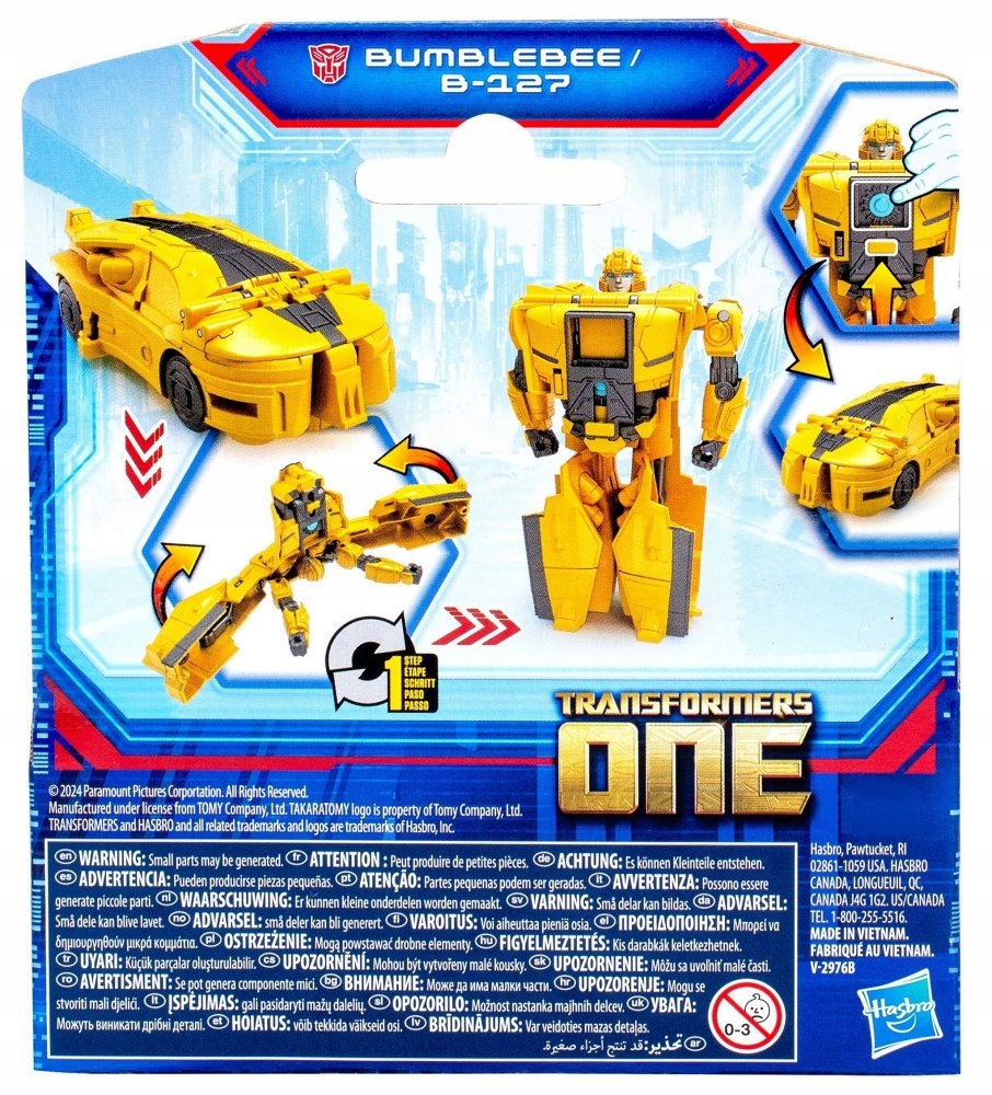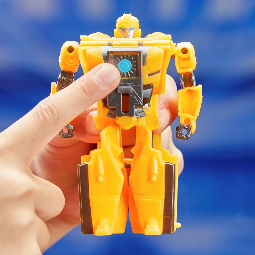 Figurka Bumblebee B-127 przekształca się z robota w cybertroniczny samochód w jednym kroku. Zobacz, jak wygląda automatyczna transformacja! Przesuń panel na klatce piersiowej Autobota i naciśnij przycisk. Robot w mgnieniu oka przeistacza się w wyścigowe auto! Konwersja z powrotem odbywa się ręcznie.
