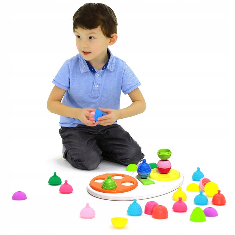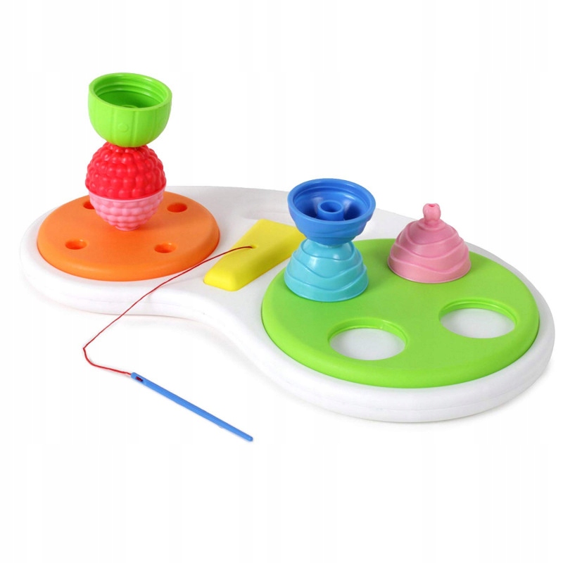 Stacja Aktywności marki Lalaboom dostarcza wiele zróżnicowanych wrażeń dotykowych ze względu na różne faktury poszczególnych elementów. Daje możliwość ćwiczenia ruchów obrotowych nadgarstka. Rozwija chwyt pęsetkowy (przeciwstawienie kciuka palcowi wskazującemu) i precyzyjne ruchy ręki przy nawlekaniu (rozwija małą motorykę i koordynację wzrokowo-ruchową). Część z małymi otworami zachęca do badania otworów palcem wskazującym, co sprzyja rozwijaniu izolowanych ruchów tego palca. To umożliwia z kolei gest wskazania palcem, ważny w komunikacji społecznej (dziecko wskazuje to, co je zaciekawiło lub to, co chce otrzymać).