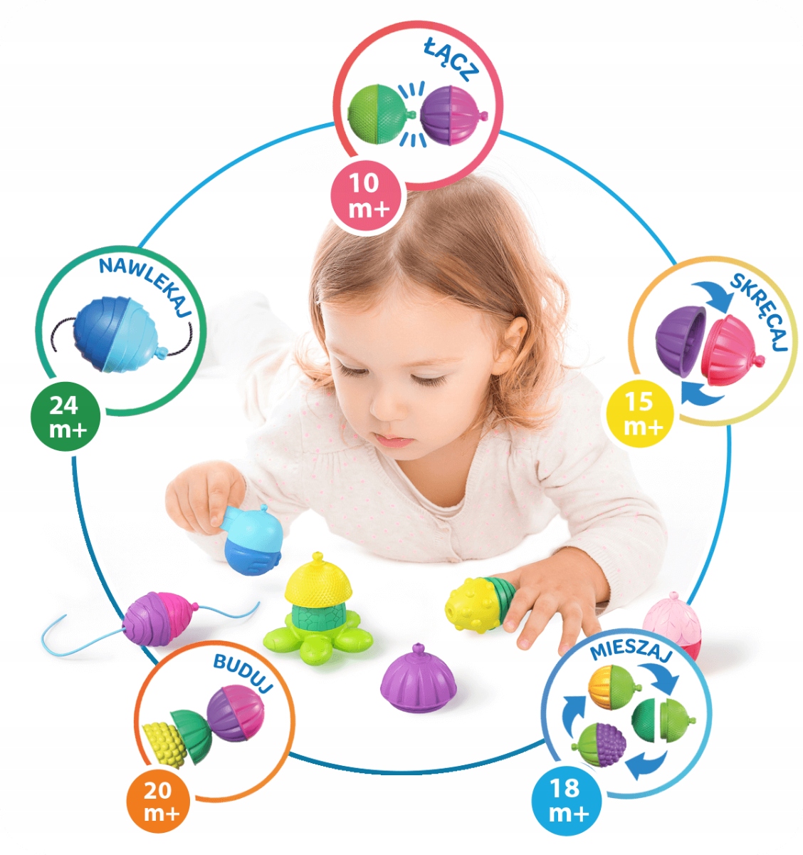 - 6 elementów do składania kulko-klocków,