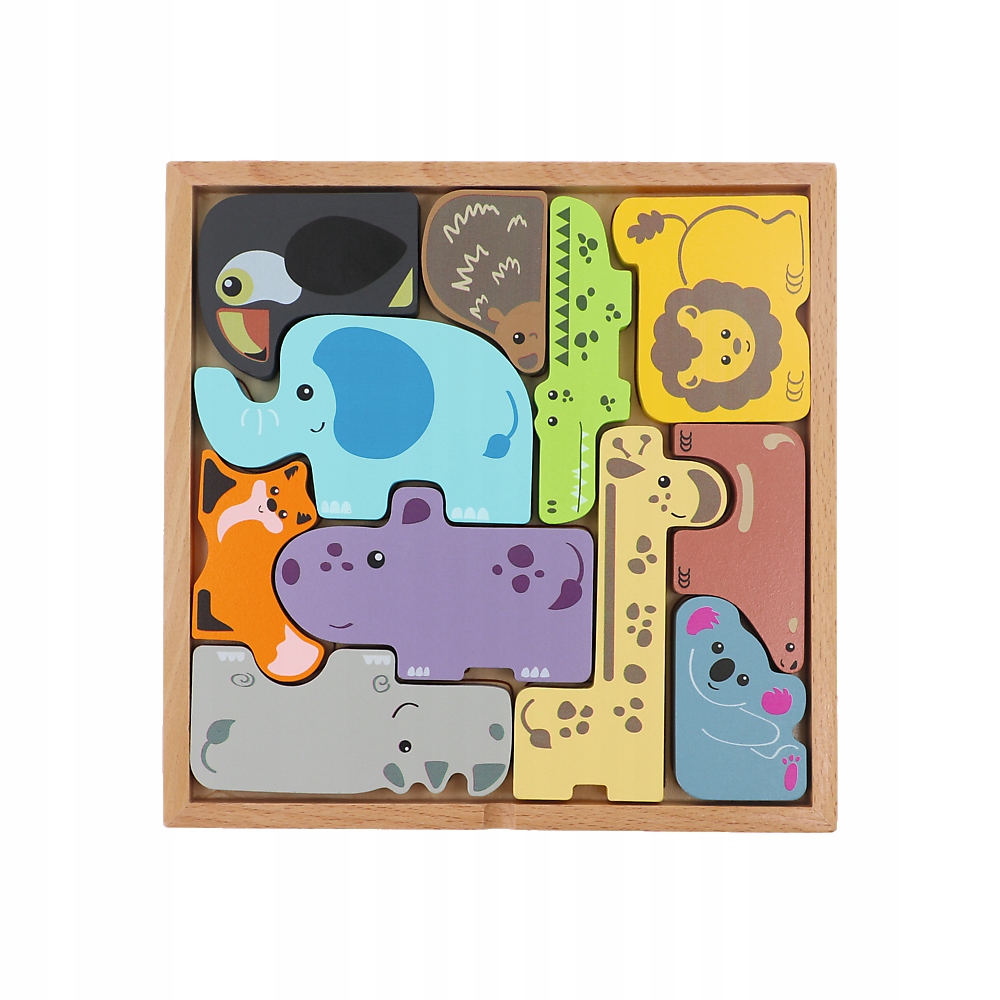 ZOO crew to drewniana łamigłówka, która polega na ułożeniu wszystkich kolorowych zwierząt, tak aby wypełniły całą ramkę. Kontury znajdujące się na podstawce ułatwiają zadanie. Drewniane zwierzęta mogą również posłużyć za figurki do zabawy.