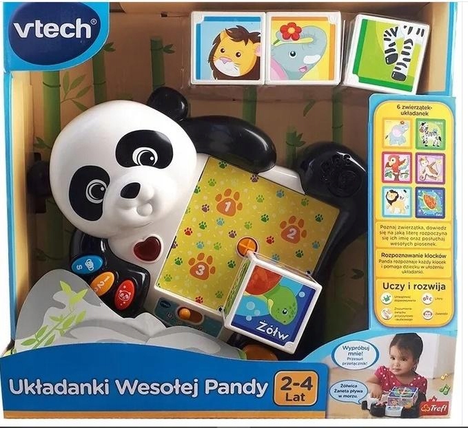 Układanki Wesołej Pandy dostarczą wiele ciekawej zabawy! Wspólnie z Pandą Paulinką dziecko ułoży na platformie 6 obrazków-zwierzątek, ucząc się samodzielności. Dziecko posłucha ciekawych informacji o zwierzątkach, pozna litery alfabetu oraz cyfry, a także może zatańczyć w rytmie energicznych piosenek i melodii.
