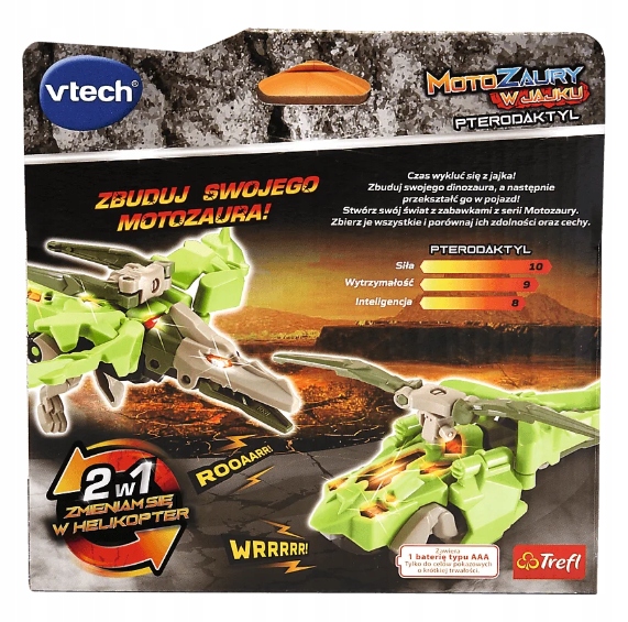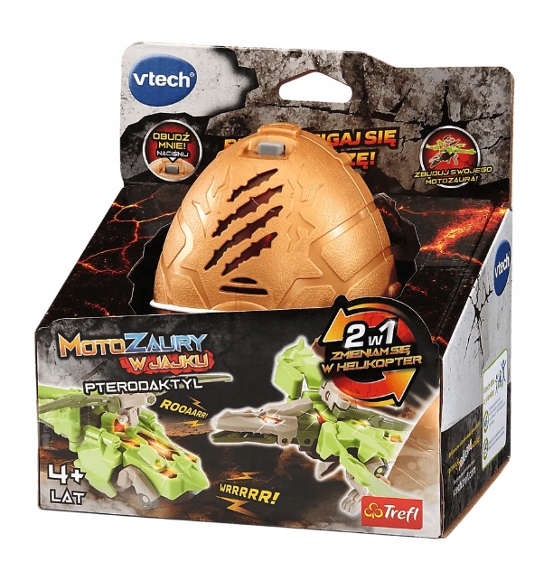 Czas wykluć się z jajka! Odkryj niezwykłą zabawkę z Motozaurami Vtech, która łączy świat dinozaurów z fascynującą motoryzacją! Zbuduj potężnego Pterodaktyla , a potem przekształć go w helikopter. Dzięki efektom świetlnym, realistycznym dźwiękom i zabawnym frazom, zabawa nabiera zupełnie nowego wymiaru!