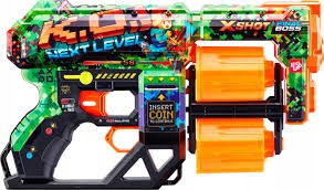 Przenieś doświadczenie personalizacji wyglądu swojej broni do prawdziwej zabawy z wyrzutniami na piankowe pociski X-Shot Skins! To jedyne w swoim rodzaju zabawkowe wyrzutnie z wariantami kolorystycznymi do wyboru, jak skórki w grze komputerowej. Zbierz całą kolekcję 7 unikatowych skinów do wyrzutni X-Shot Skins lub dobierz ulubiony wzór do swojego gustu. Wyrzutnia X-Shot Skins Dread Boom Wzór B ma fajowe nadruki nawiązujące do klasycznych gier video, więc na pewno przypadnie do gustu małym graczom i pozwoli poczuć się jak bohater ulubionej gry!Przygotuj się na prawdziwą bitwę z wyrzutnią X-Shot Skins Dread Boom! Dwa bębnowe magazynki to aż 12 szybkich strzałów, każdy na odległość do 27 metrów. Trafiaj przeciwników z daleka i ciesz się niezmąconym strzałem dzięki ulepszonej formule strzałek z technologią kieszeni powietrznej. To jeszcze szybsze, dokładniejsze i dalsze strzelanie.