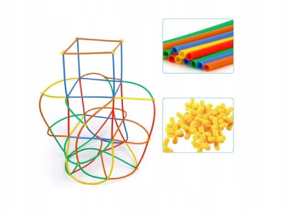 Elastyczne klocki konstrukcyjne w formie słomek w 5-ciu żywych barwach to idealna zabawka dla małych konstruktorów.