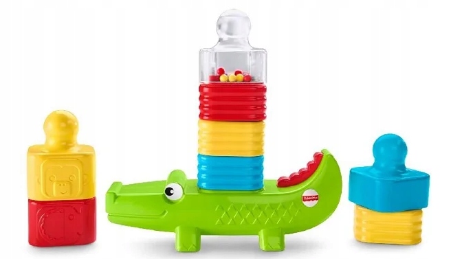 - na krokodylku można ułożyć klocki (6 sztuk) tworząc tym samym wieżę