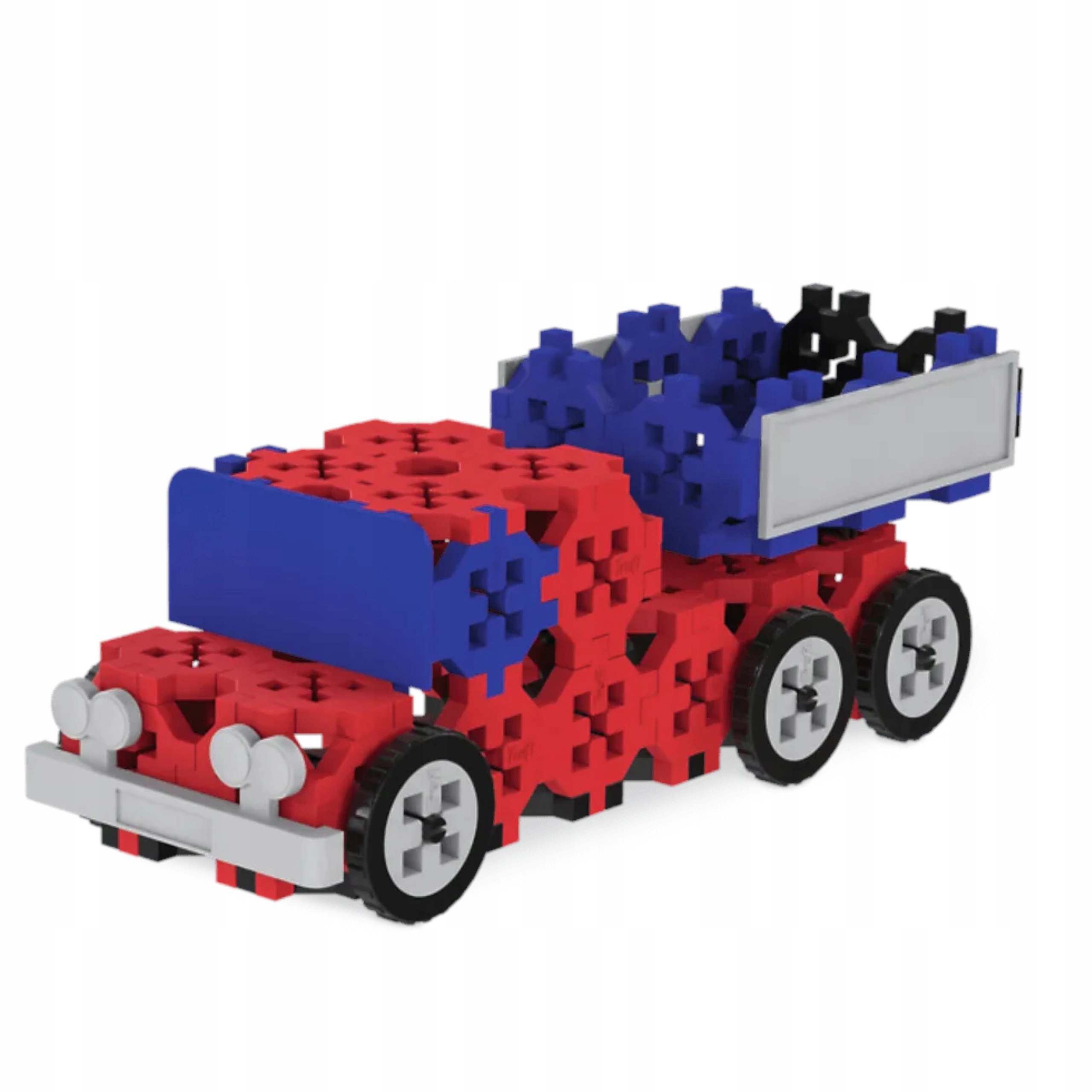 Zestaw klocków Connect 2w1 zawiera aż 160 klocków, z których można ułożyć dwa samochodziki: autobus czy auto z naczepą albo można tworzyć własne konstrukcje. W zestawie są tez klocki dekoracyjne: okna, drzwi, maskę czy zderzaki, które uatrakcyjnią zbudowane samochodziki. Figurka kierowcy o imieniu Tom, pozwala na tworzenie własnych historii, pobudzając wyobraźnię dziecka.