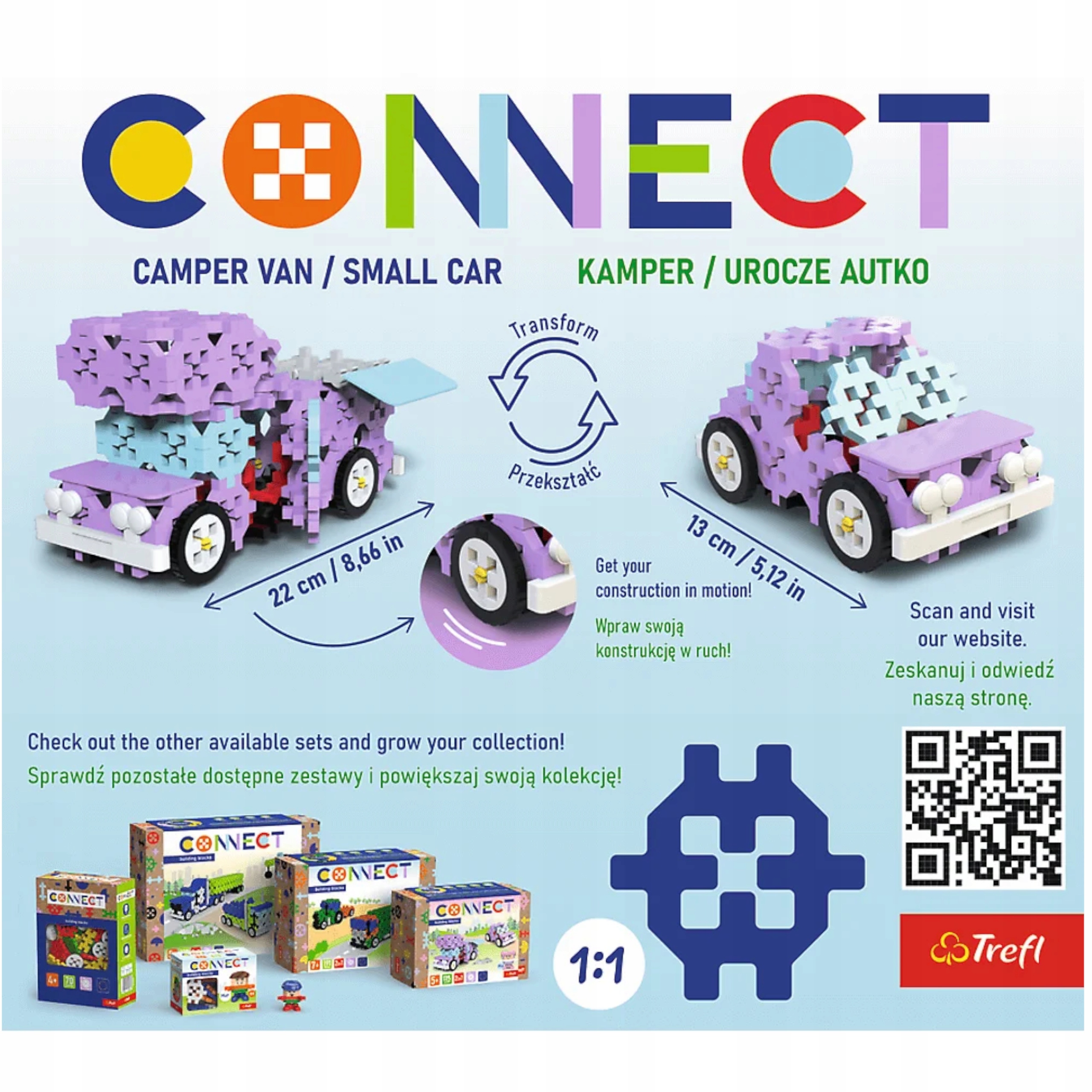 Zestaw klocków Connect – 2w1: Kamper/ Urocze autko Trefl