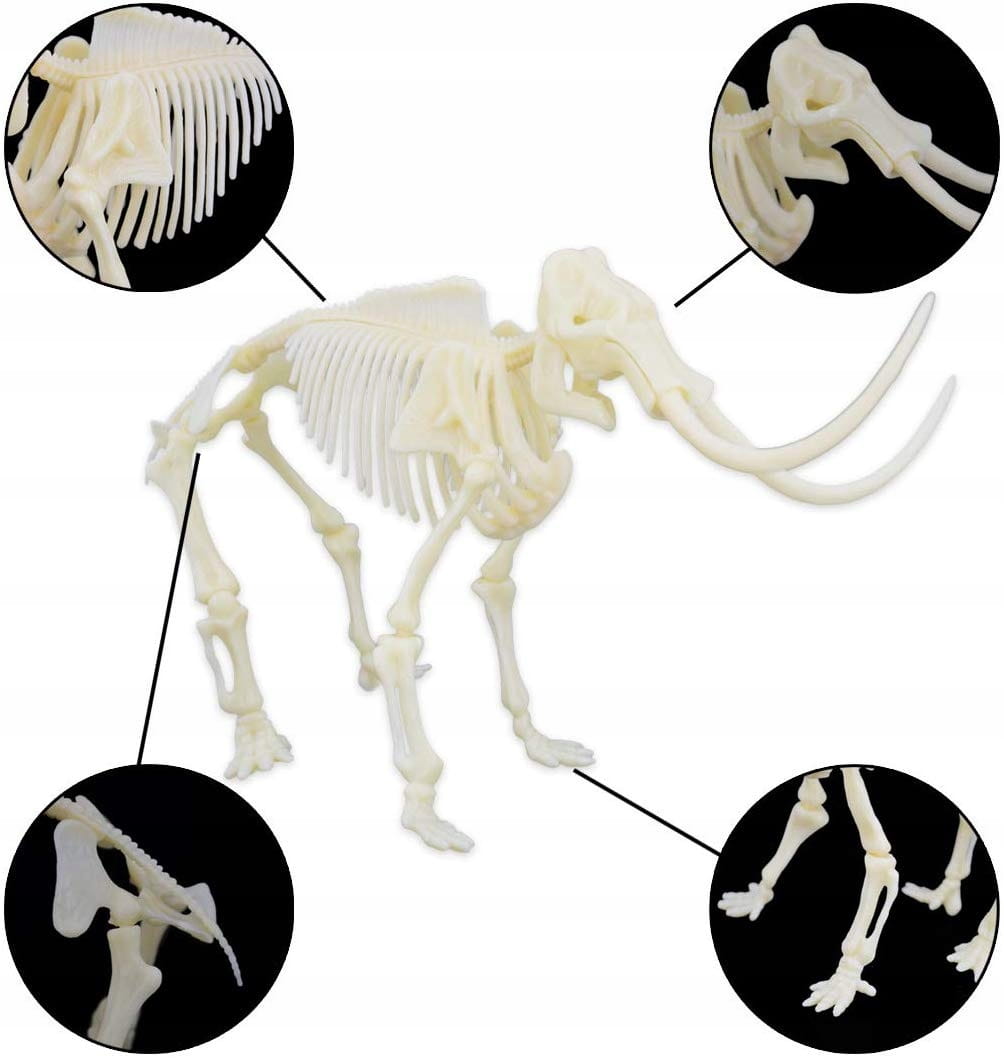Podczas zabawy wyćwiczysz uważność, precyzję i skupienie, a cierpliwość zostanie nagrodzona super modelem mamuta do złożenia. Oczyść pędzelkiem wszystkie elementy szkieletu, złóż według ilustrowanej instrukcji, a następnie podziwiaj jak świeci w ciemności!