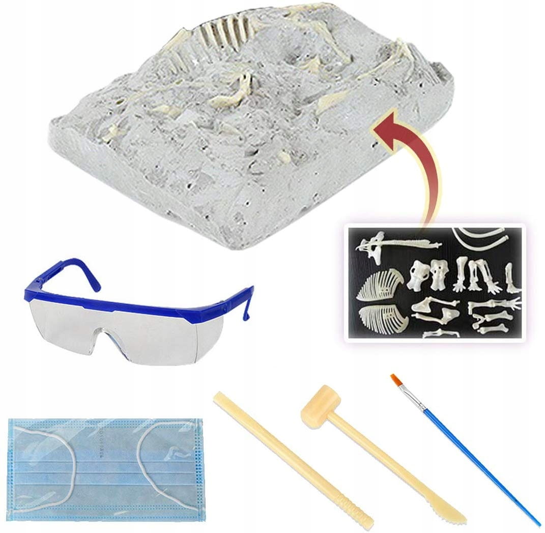 Z tym zestawem poznasz świat archeologii i paleontologii. Gipsowa bryła oraz narzędzia takie jak młotek, dłuto czy pędzelek pozwolą na zabawę w wydobywanie skamieniałości i śladów po prehistorycznych stworzeniach.