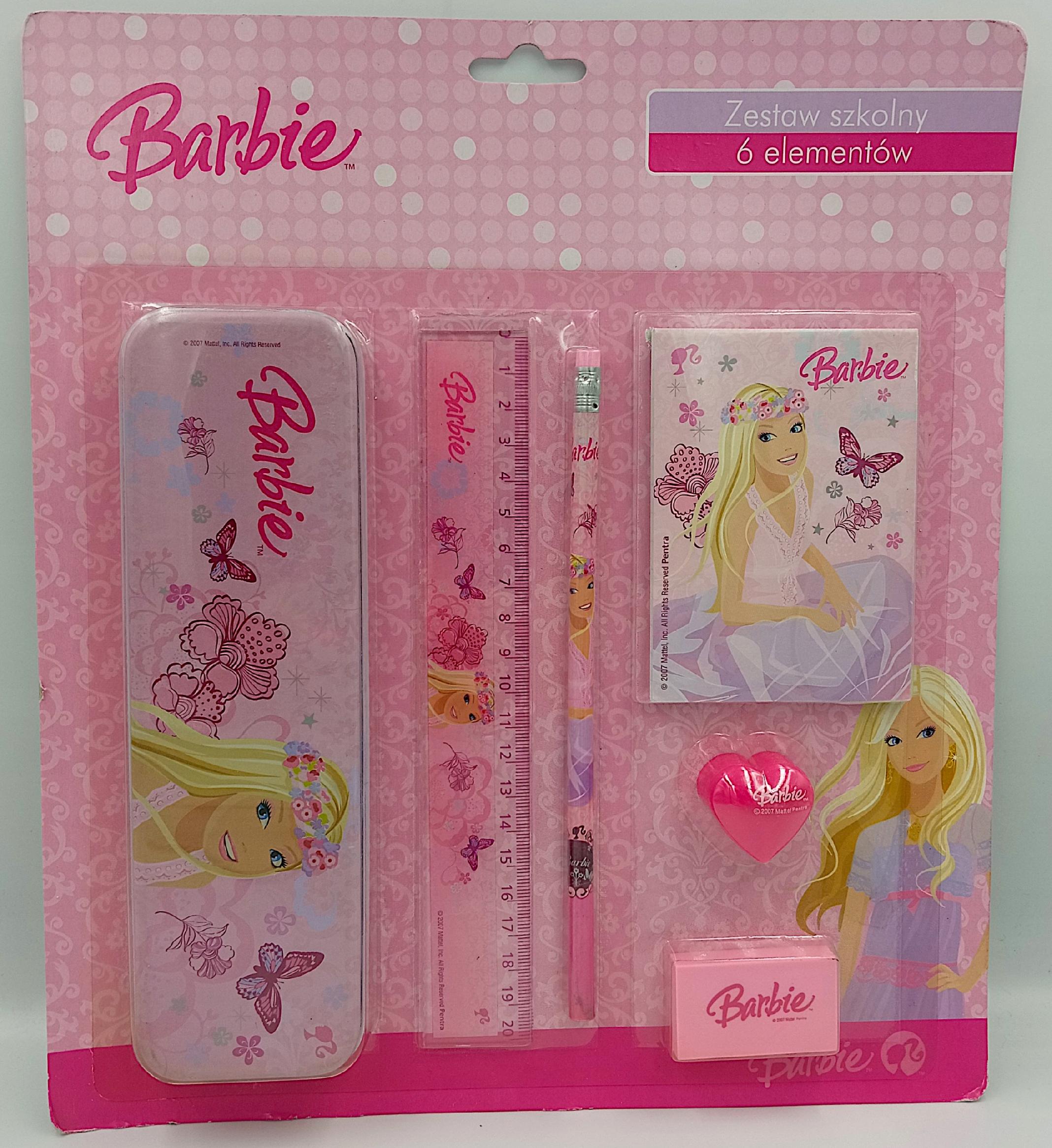 Zestaw szkolny z motywami Barbie to 6 elementów: